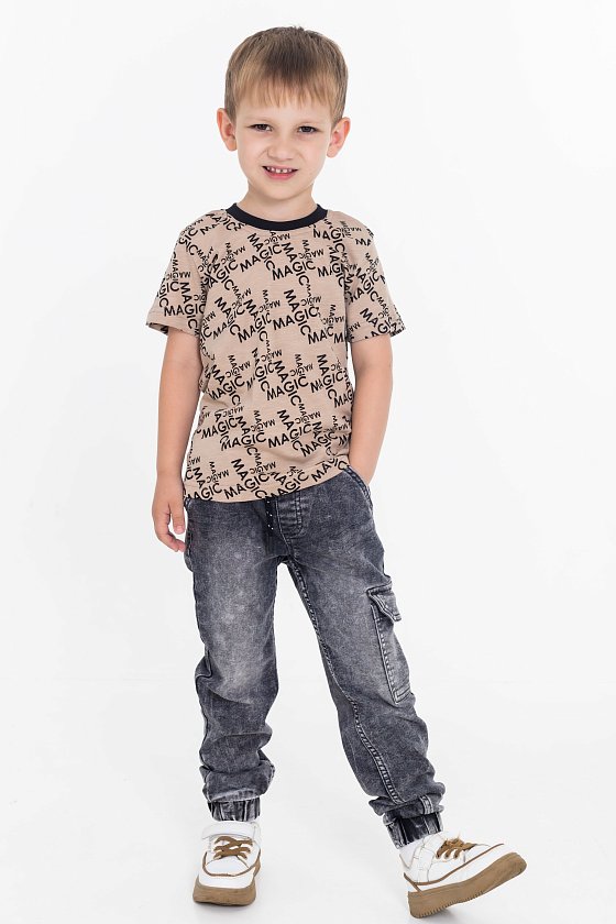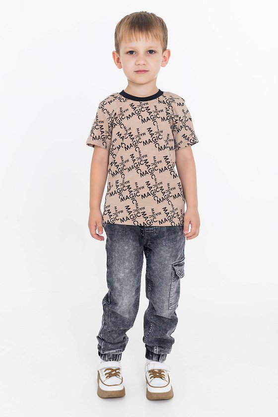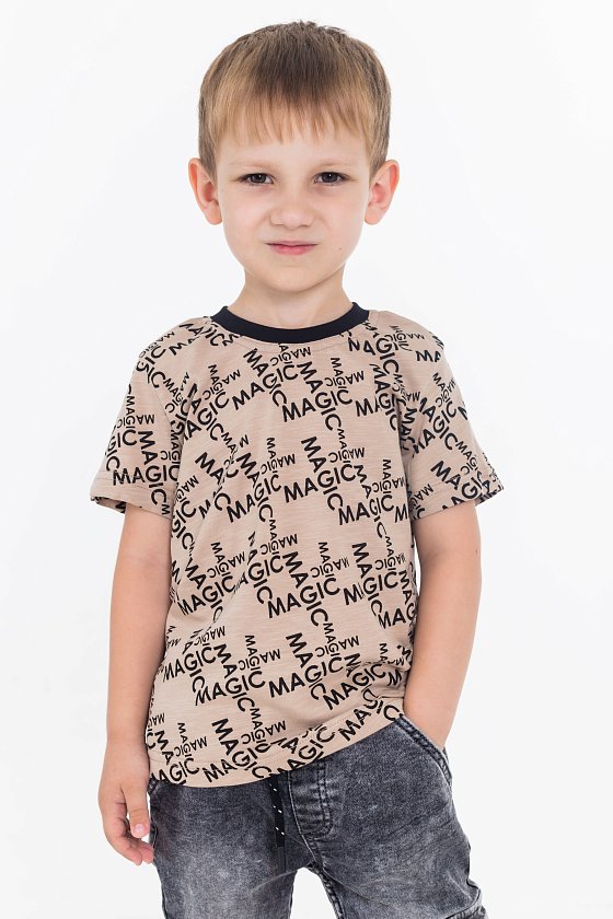 Футболка для мальчика из кулирки. Круглый вырез горловины, втачной рукав.