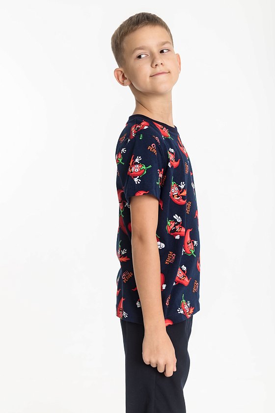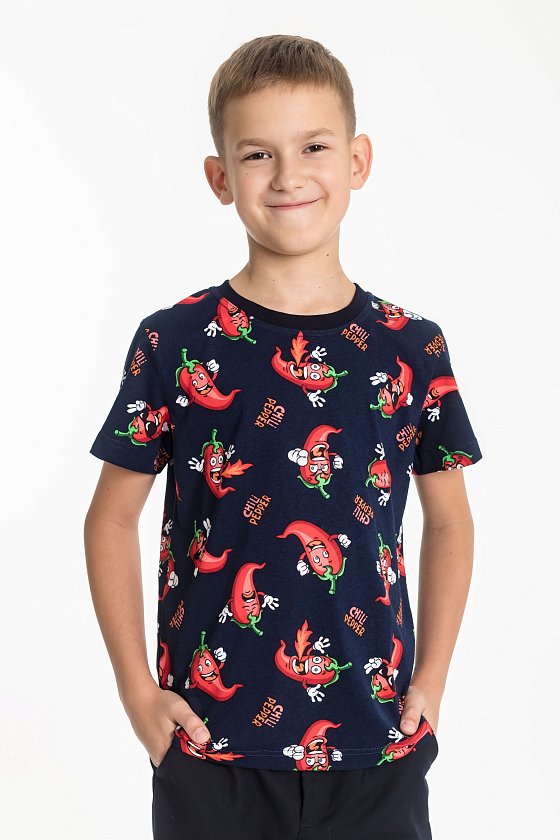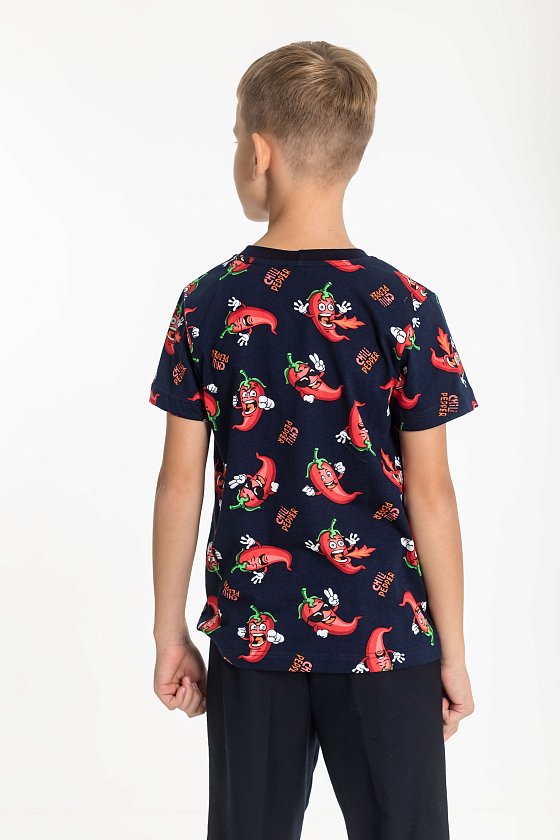 Футболка для мальчика из кулирки. Круглый вырез горловины, втачной рукав.