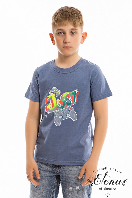 Футболка выполнена из хлопкового полотна, с коротким рукавом и круглым вырезом горловины. Спереди нанесён принт.