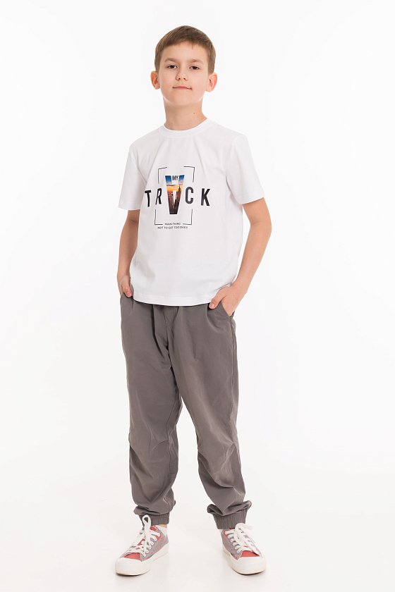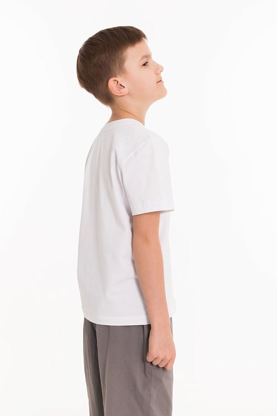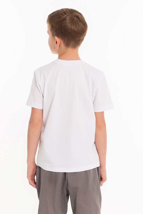 Футболка выполнена из кулирки с лайкрой. С коротким рукавом и круглым вырезом горловины. Спереди нанесён оригинальный принт.