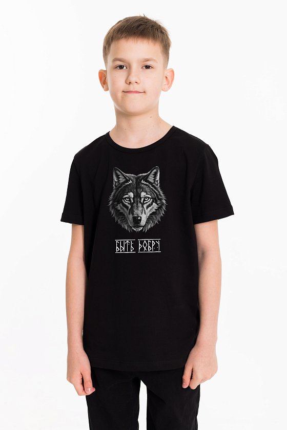 Детская футболка с принтом изготовлена из хлопкового полотна, что обеспечивает комфорт и хорошую воздухопроницаемость. Футболка имеет короткий рукав и круглый вырез горловины, что придает ей классический стильный вид. Изготовленная из натуральной ткани, футболка обеспечит комфорт в течение всего дня.