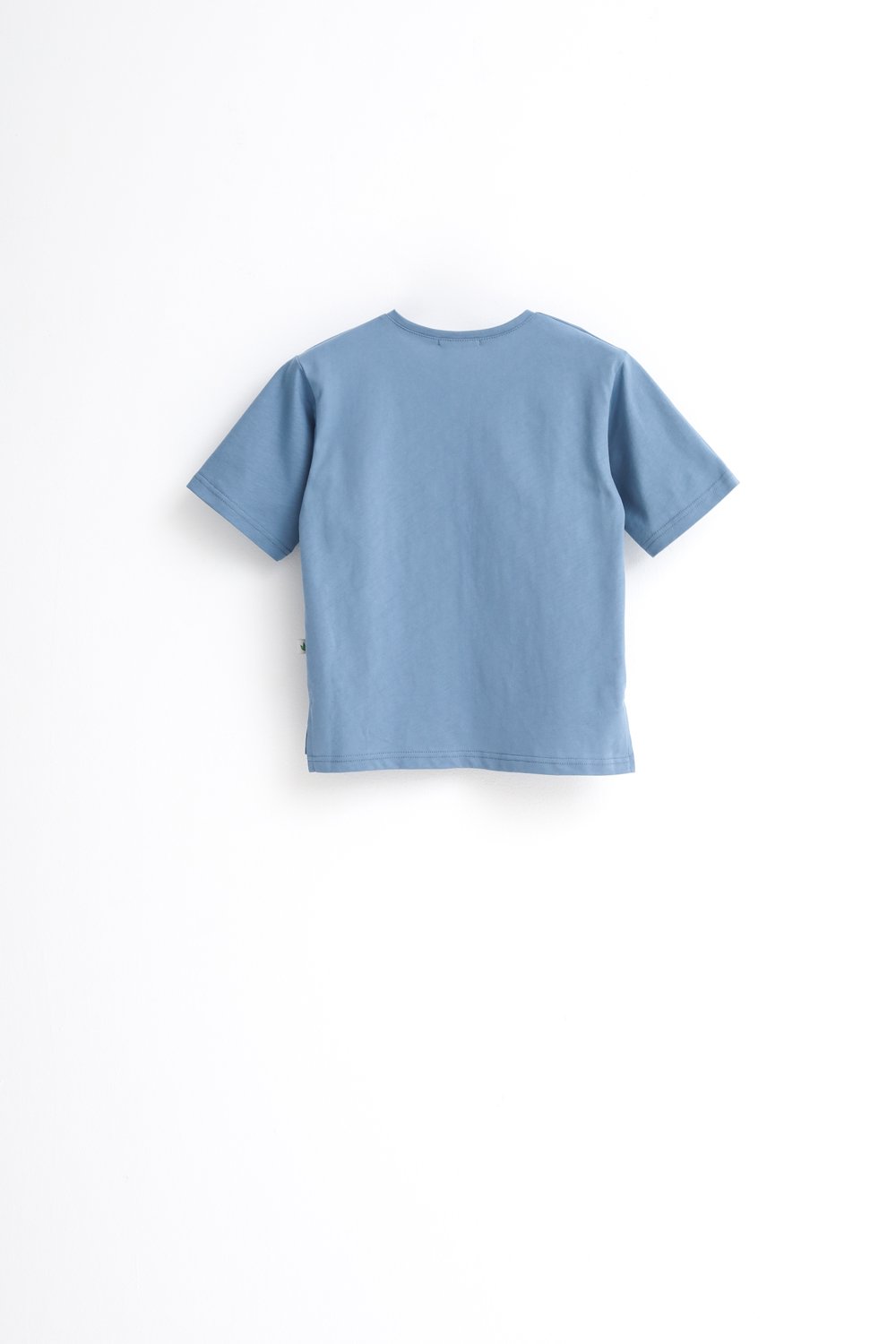 Футболка свободного кроя, с удлиненной спинкой и разрезами по бокам, с принтом на полочке.