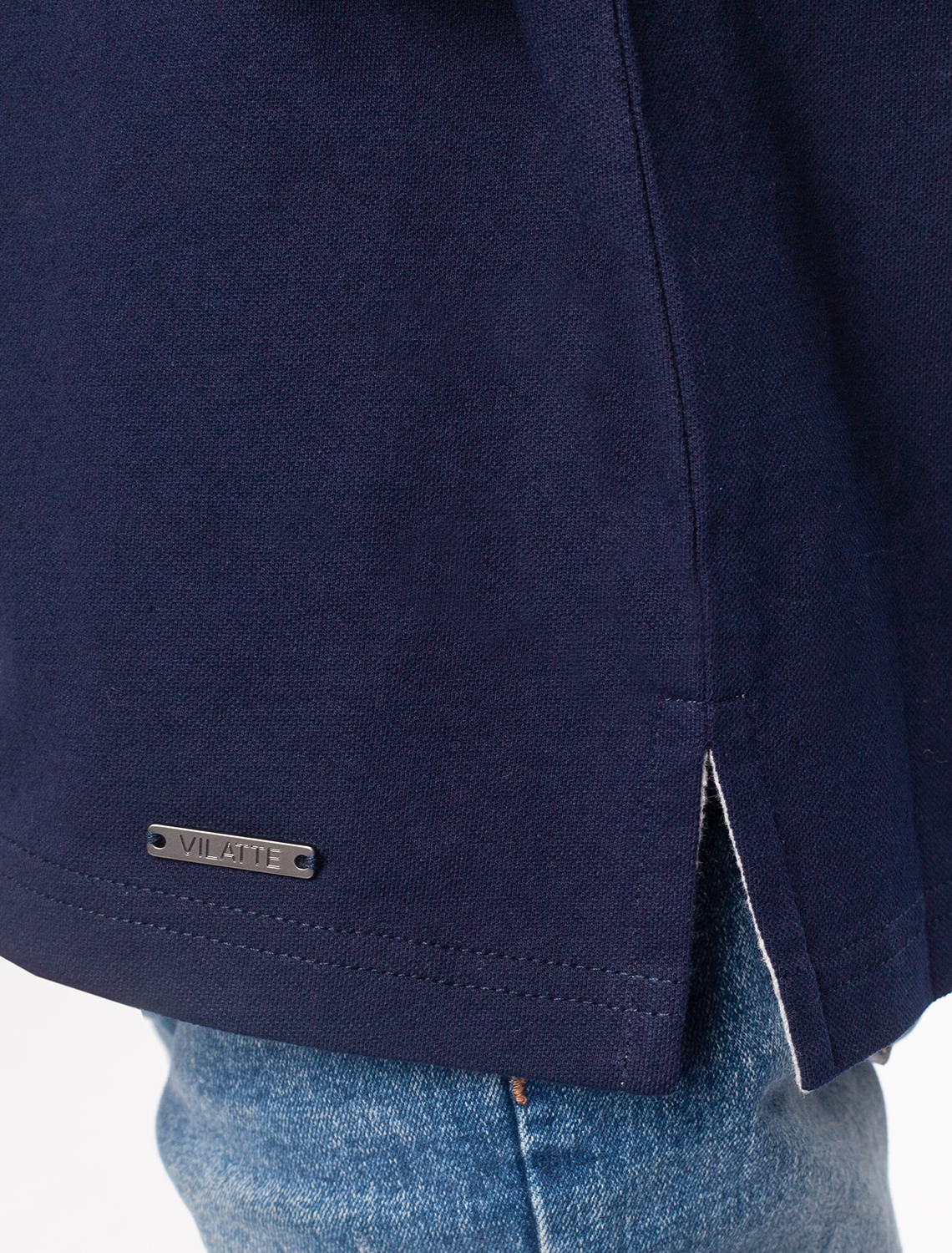 Ст.цена 1090р Футболка-поло из трикотажа пике с эластаном M49.387 темно-синий