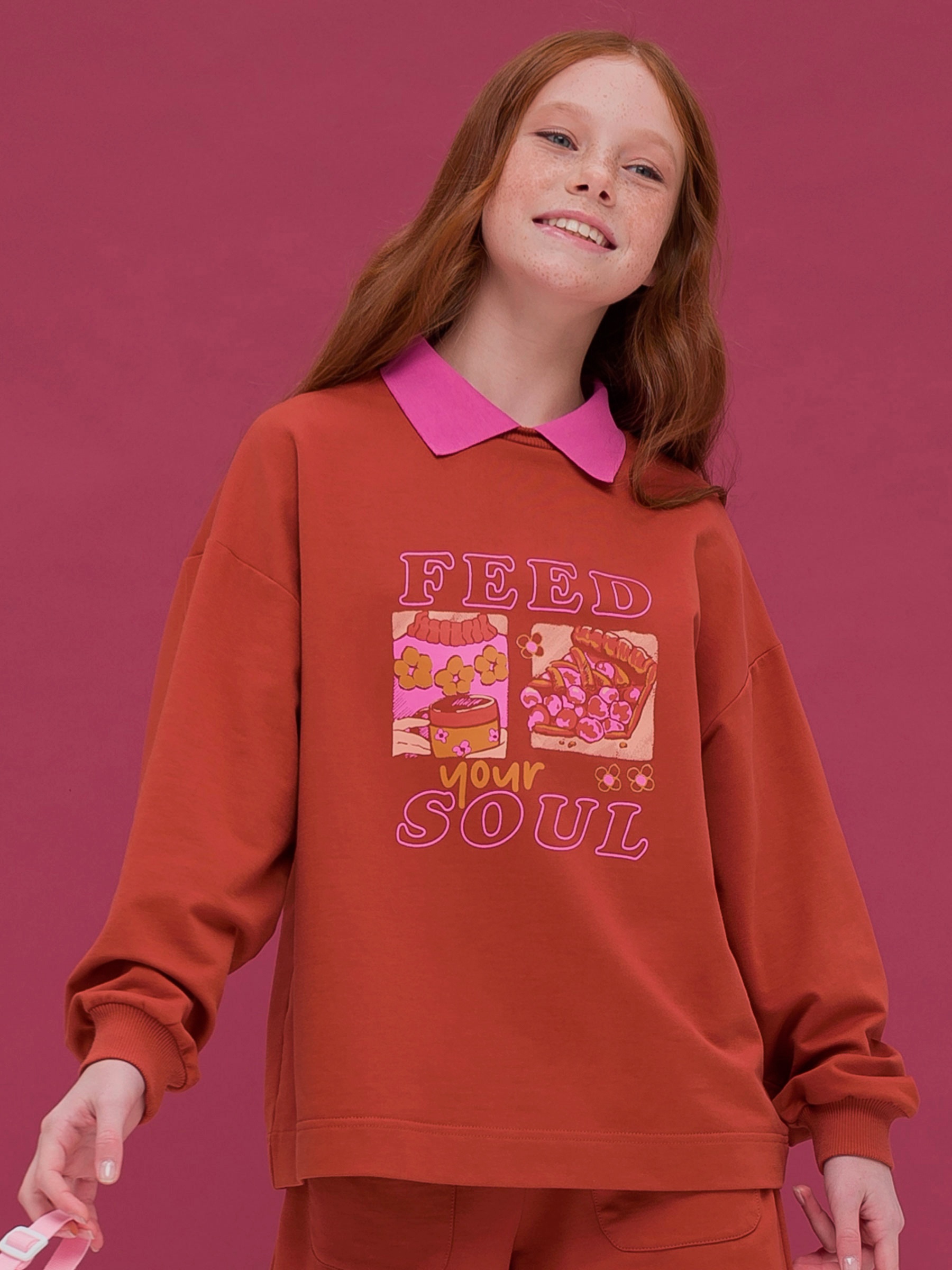Состав: 95%хлопок 5%эластанОписание: Свитшот из футера для девочки. Теплая, мягкая, приятная на ощупь ткань с 95% хлопка в составе – почти не мнется, сохраняет форму даже после частых стирок. Воротник из рибаны – плотно прилегает и не давит, отлично тянется. Свободной крой и спущенное плечо – комфортный и модный оверсайз. Яркий позитивный принт для улыбки и настроения на целый день. Отлично сочетается с брюками-палаццо, джоггерами. Подходит на каждый день, для учебы и активного образа жизни.