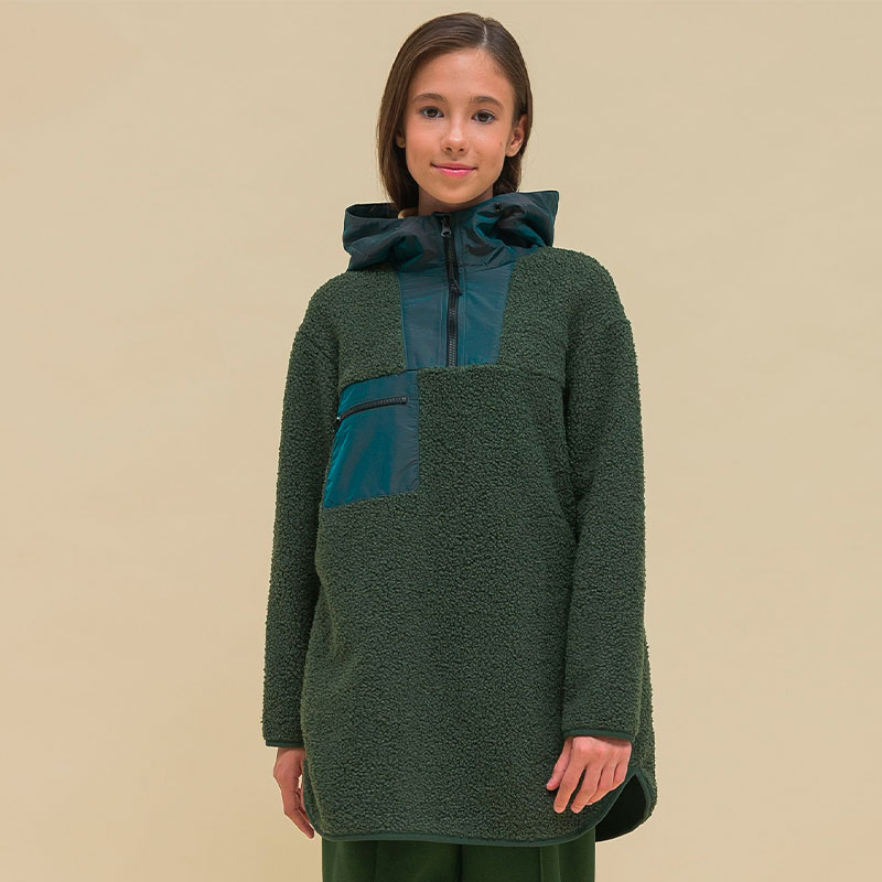 Состав: 100%полиэстер, вставка: 60%нейлон 40%полиэстерОписание: Худи детское для девочки. Туника выполнена в сочетании двух материалов: бербер-флиса с мягкой фактурой «барашка» и гладкой курточной ткани. Это супермодный тренд. Капюшон, отделка горловины и карман на груди — из курточной ткани — максимум практичности. Ребёнок не промокнет, а карман не будет мараться при частом использовании. Худи для девочек актуального оверсайз-силуэта со спущенным плечом подарит ребёнку комфорт и не будет стеснять его движений. Высокий воротник защищает шею от холода и ветра. По низу изделия и низу рукавов окантовка эластичной тесьмой —они не растягиваются и сохраняют форму и прекрасный внешний вид надолго. Справа на груди накладной карман на молнии — можно спрятать телефон. В боковых швах также есть карманы — удобно пользоваться. Капюшон двухшовный, это обеспечивает анатомически правильную форму и комфортную посадку по голове. Объём капюшона регулируется тесьмой, внутри подкладка из мягкого флиса. Двойной капюшон - швы закрыты, смотрится аккуратно. По переду застёжка на короткую молнию — один из супер-трендов сезона. Худи однотонное, без принта. Неприхотливо в уходе. Одежда из флиса тёплая, лёгкая, мягкая, просто стирается и быстро сохнет, не скатывается, сохраняет первозданную форму в течение длительного времени. Вставки выполнены из ткани, в составе которой нейлон и полиэстер, они прочные, не выгорают и не растягиваются. Худи выполнено в зелёном цвете (трендовый оттенок хаки). В линейке представлены следующие размеры: 2 (92): 3 (98): 4 (104): 5 (110): 6 (116): 7 (122): 8 (128): 9 (134): 10 (140): 11 (146). Худи утеплённое подходит для девочек дошкольного и младшего школьного возраста, а также девочек-подростков. Его можно носить в детский сад, на прогулки, отдых, а также дома. Худи с капюшоном идеально для круглогодичной носки: прохладным летом, осенью и весной (демисезон), зимой. Замечательный подарок дочери, внучке или сестре на День рождения и любой другой праздник.