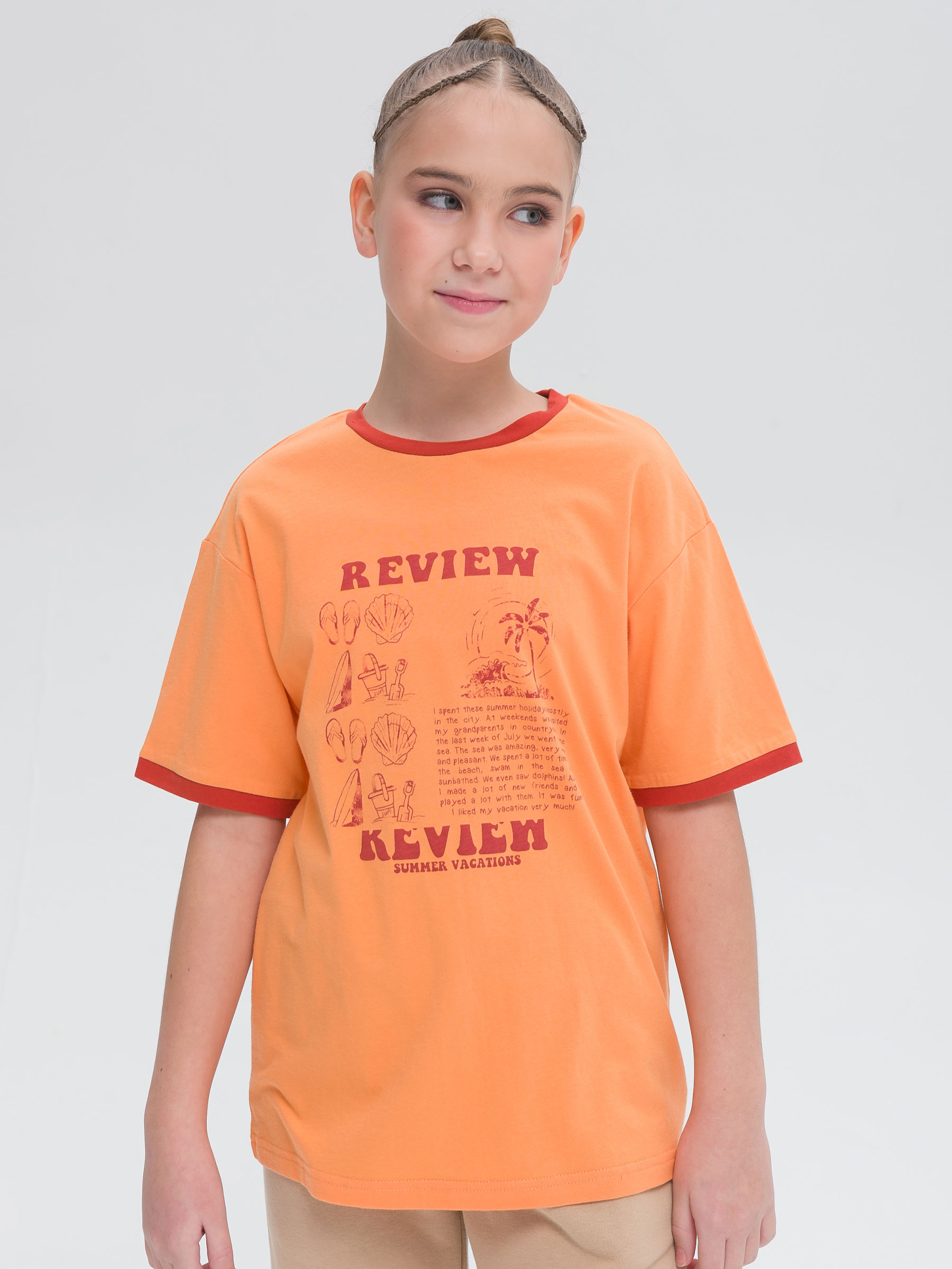 Состав: 100%хлопокОписание: Футболка умеренного объема для девочки. 100% хлопок в составе – ткань мягкая, дышащая, приятная на ощупь. Контрастная обработка по горловине и рукавам в цвет принта – оригинальные визуальные акценты. Футболка отлично подходит для создания стильного образа весной и летом в паре со слоучами или леггинсами. Идеальна для активного детства – на каждый день, для учебы и занятия спортом.