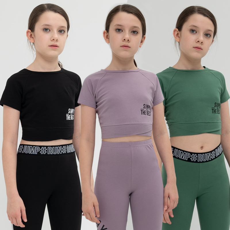 Состав: 93%хлопок 7%эластанОписание: Спортивная укороченная футболка топ для девочки из натурального материала. Мягкий, эластичный, прочный, дышащий. Не теряет свойств после многочисленных стирок. Рукава реглан не сдерживают активные движения ребенка. А фигурная линия низа плотно, но мягко зафиксирует топ на месте и он не будет подниматься вверх. Небольшой, но заметный и стильный принт переводится как Просто лучшая, оставайся активной выделит юную модницу и придаст ей уверенности.