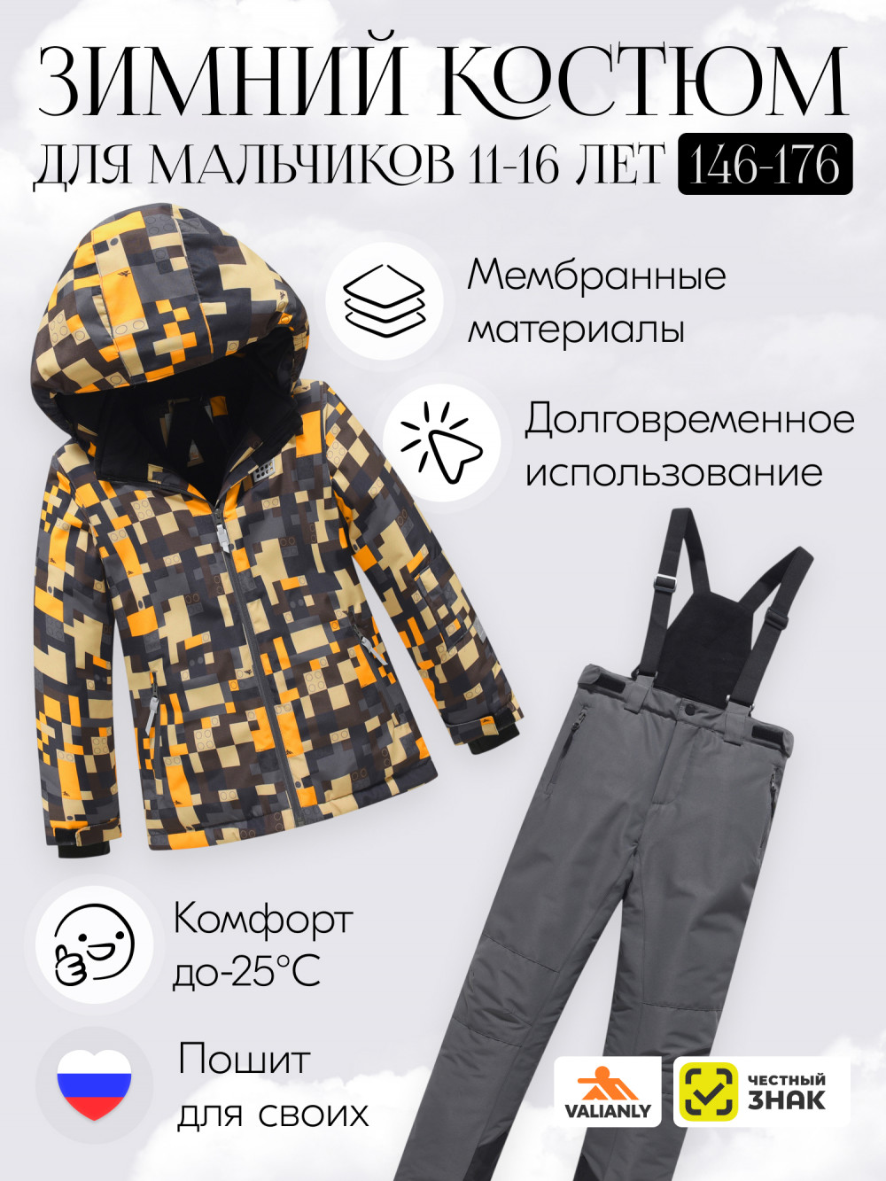Зимний лыжный костюм Valianly для мальчика - идеальный защитник от мороза. Незаменимый горнолыжный костюм, разработанный специально для подростков и юношей с ростом от 146 до 176 см. Этот костюм сочетает в себе продуманный дизайн и высокую функциональность, делая его неотъемлемым атрибутом зимних приключений на склонах.