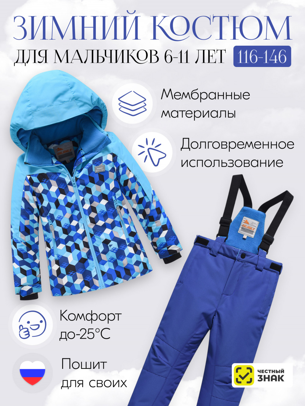 Этот костюм станет отличным выбором для юных горнолыжников, обеспечивая как стильный внешний вид, так и комфорт во время активного отдыха! Уверены, вы по достоинству оцените высокое качество нашей продукции! Пусть зима станет временем незабываемых приключений!