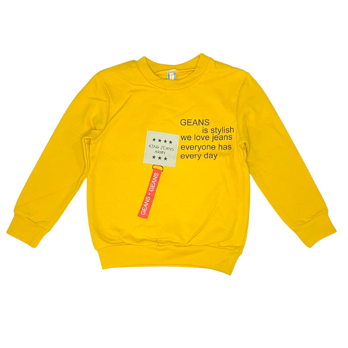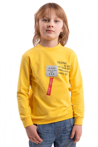 Хлопковая кофта с длинным рукавом для мальчиков, жёлтый 822726 принт `надписи