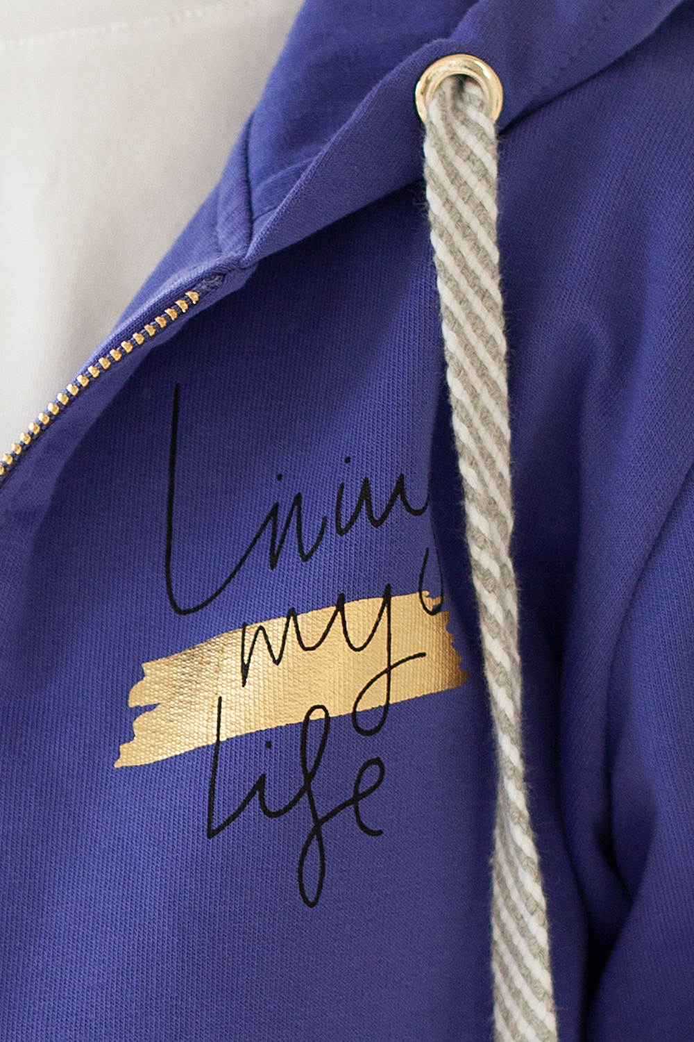 Лавандовое худи на молнии с длинными рукавами и спущенной линией плеч сшито из премиального хлопкового футера. Материал отлично поддерживает циркуляцию воздуха, а крой не ограничивает движения. Модель с высококачественной золотистой фурнитурой украшена устойчивым принтом. Идеально в костюме с брюками F44.060