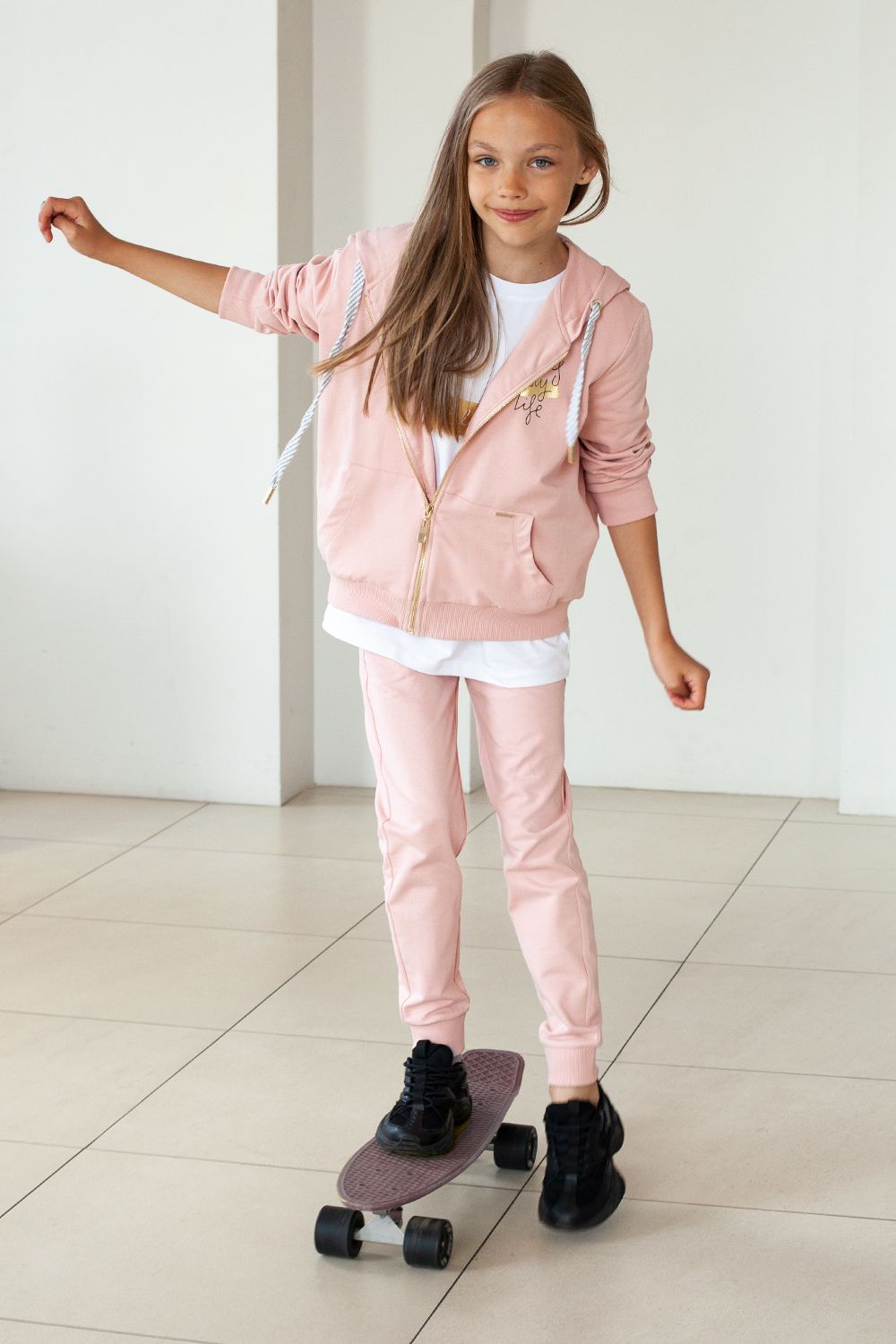 Ст.цена 1690р Худи на молнии из премиального футера с золотистой фурнитурой F49.405 пудровый