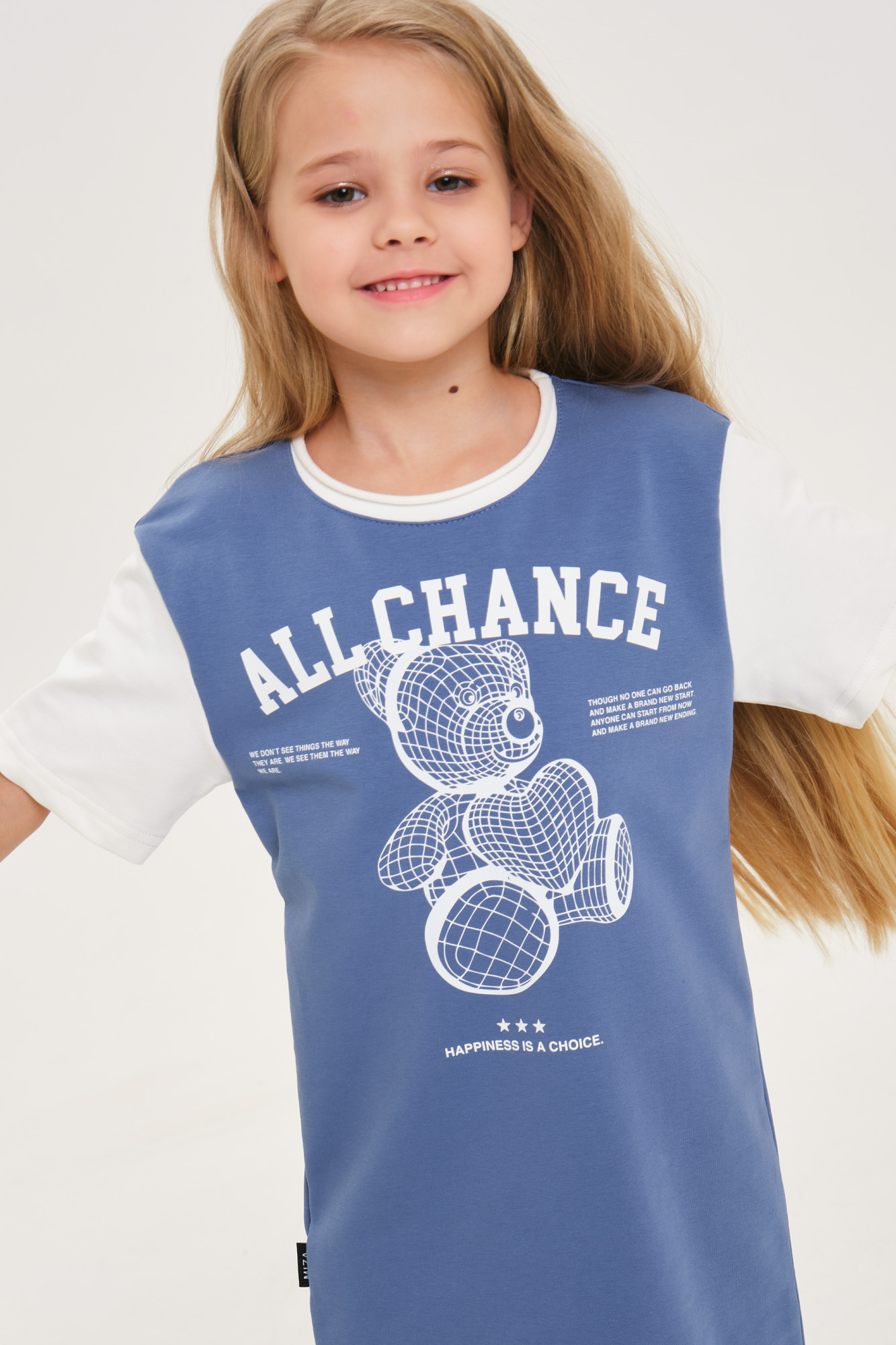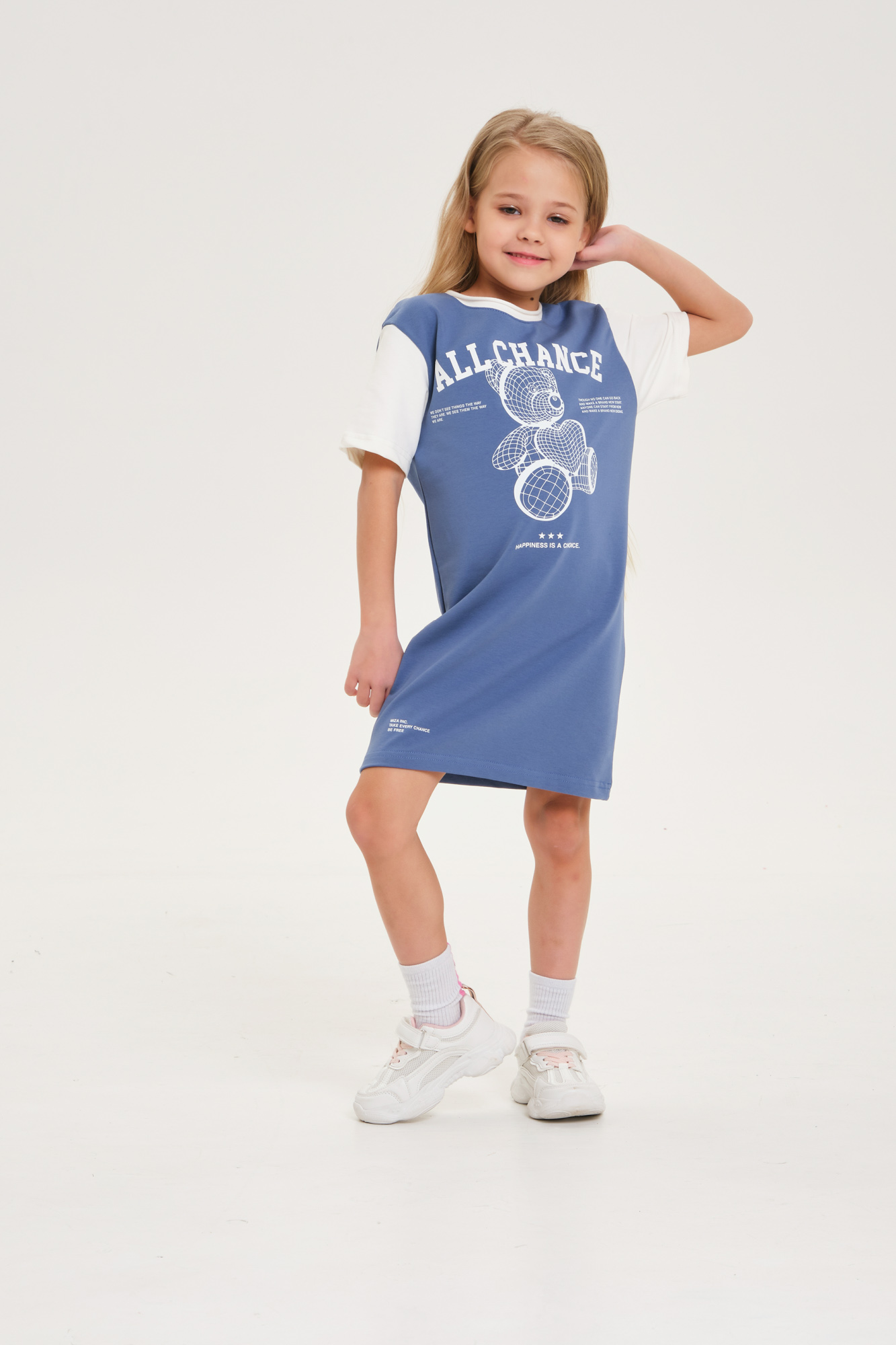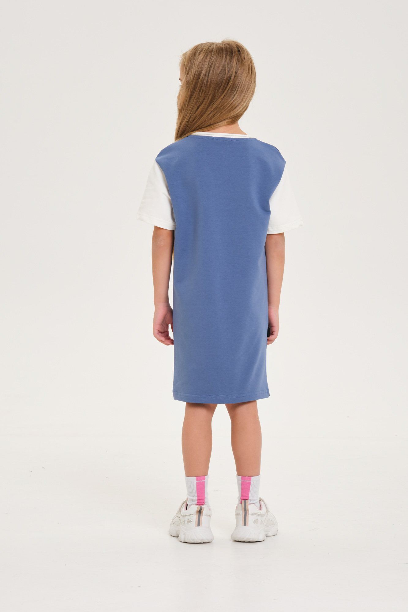 Стильное платье-футболка прямого силуэта с отделочными рукавами.