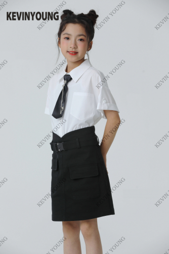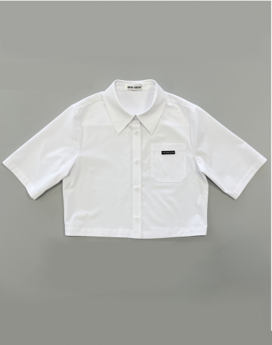 Блузка с коротким рукавом из  премиальной вискозной ткани укороченного  кроя.  Накладной карман. Застежка на пуговицы. Нашит шеврон.