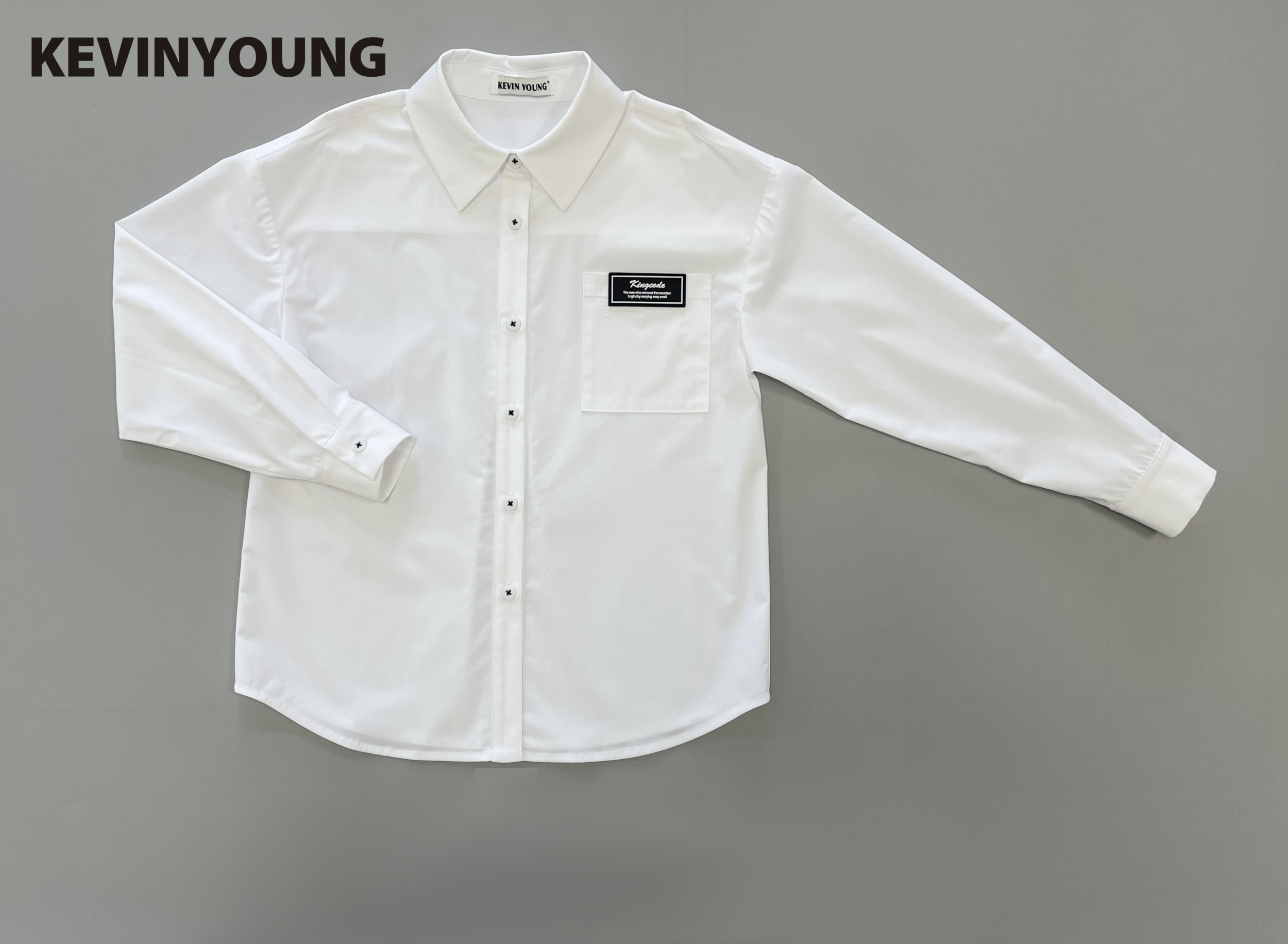Блузка с длинным рукавом из  премиальной вискозной ткани свободного кроя. Спущенное плечо. Застежка на пуговицы. Накладной карман. Нашит прорезиненный шеврон.