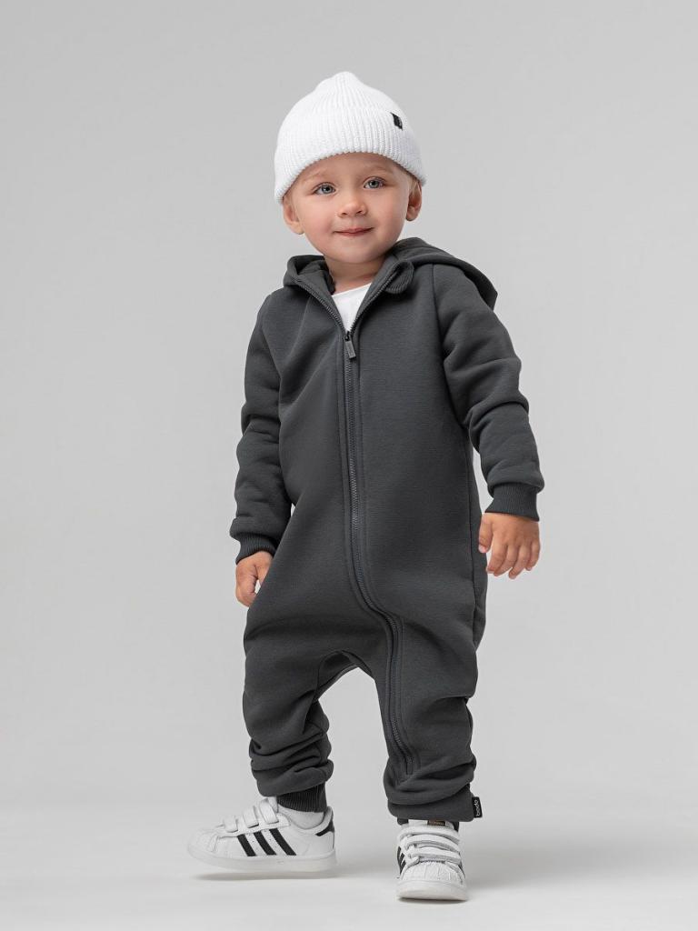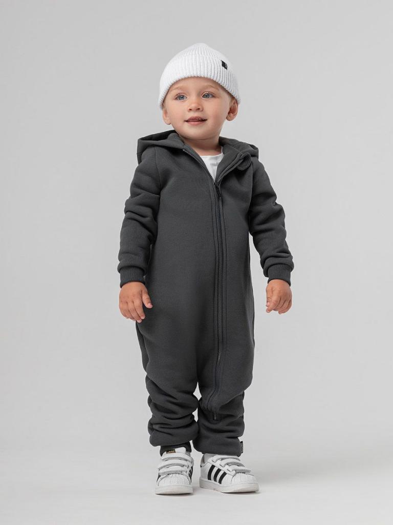 Артикул 19-14MU Материал футер трехнитка с начесом Состав 80% хлопок 20% полиэстер Комбинезон для малышей с начесом. Комбинезон с капюшоном и ассиметричной молнией.