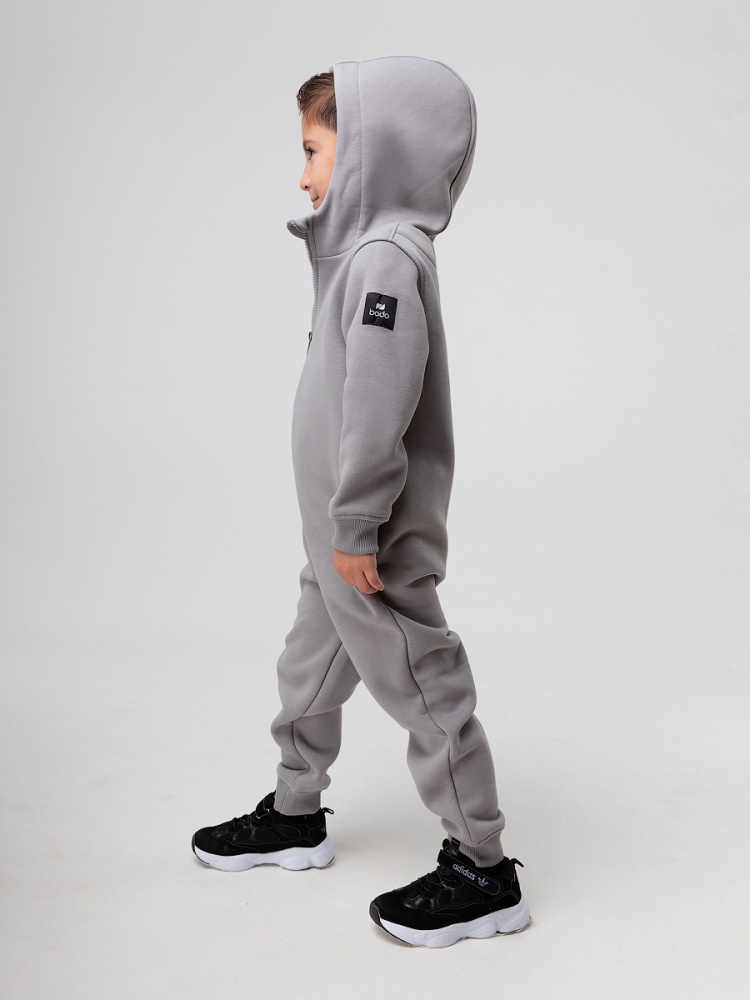 Материал футер трехнитка с начесом Состав 80% хлопок 20% полиэстер Комбинезон для детей. Детали: несъемный капюшон, застежка - молния, манжеты, защитная планка на молнии. Состав: футер трехнитка с начесом 80% хлопок 20% полиэстер
