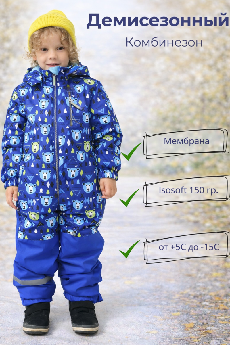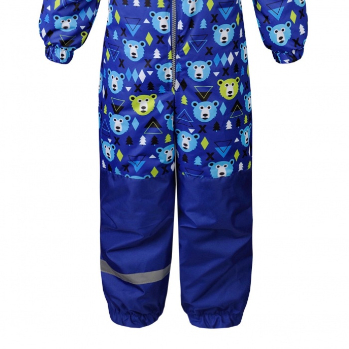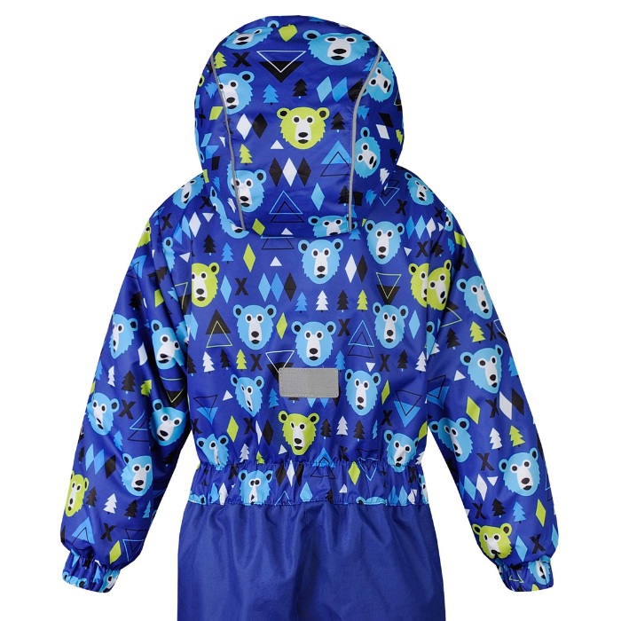 Демисезон, Зима Слитный комбинезон Caimano Morgan практичный вариант для мальчиков в возрасте до 6 лет. Насыщенный синий цвет с разноцветным принтом `мордочек медвежат` отвлекут внимание от случайные пятен и загрязнений. Внешняя пропитка Teflon-eco препятствует частичкам грязи и капелькам воды проникать во внутрь волокон ткани, поэтому загрязнение легко убираются влажной губкой. Пропитка без содержания вредного фторуглерода.