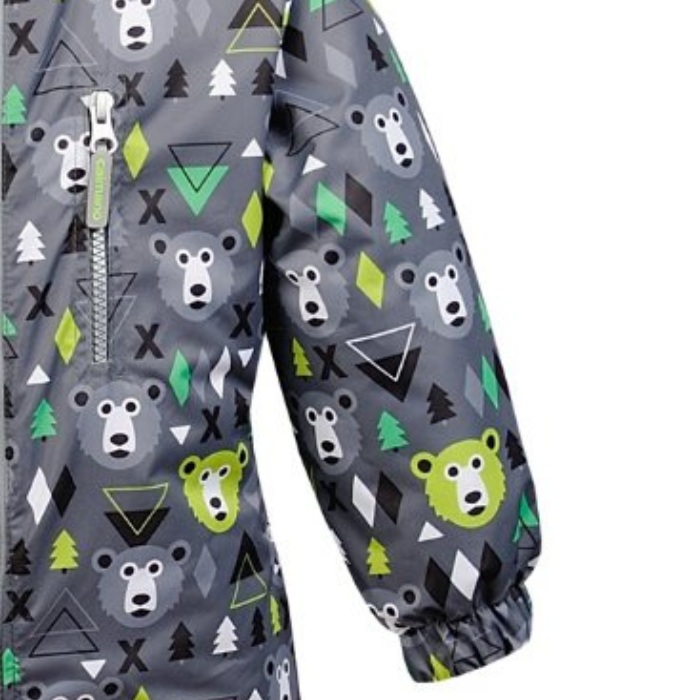 Практичный вариант для мальчиков в возрасте до 6 лет. Насыщенный серый цвет с разноцветным принтом `мордочек медвежат` отвлекут внимание от случайные пятен и загрязнений. Внешняя пропитка Teflon-eco препятствует частичкам грязи и капелькам воды проникать во внутрь волокон ткани, поэтому загрязнение легко убираются влажной губкой. Пропитка без содержания вредного фторуглерода.