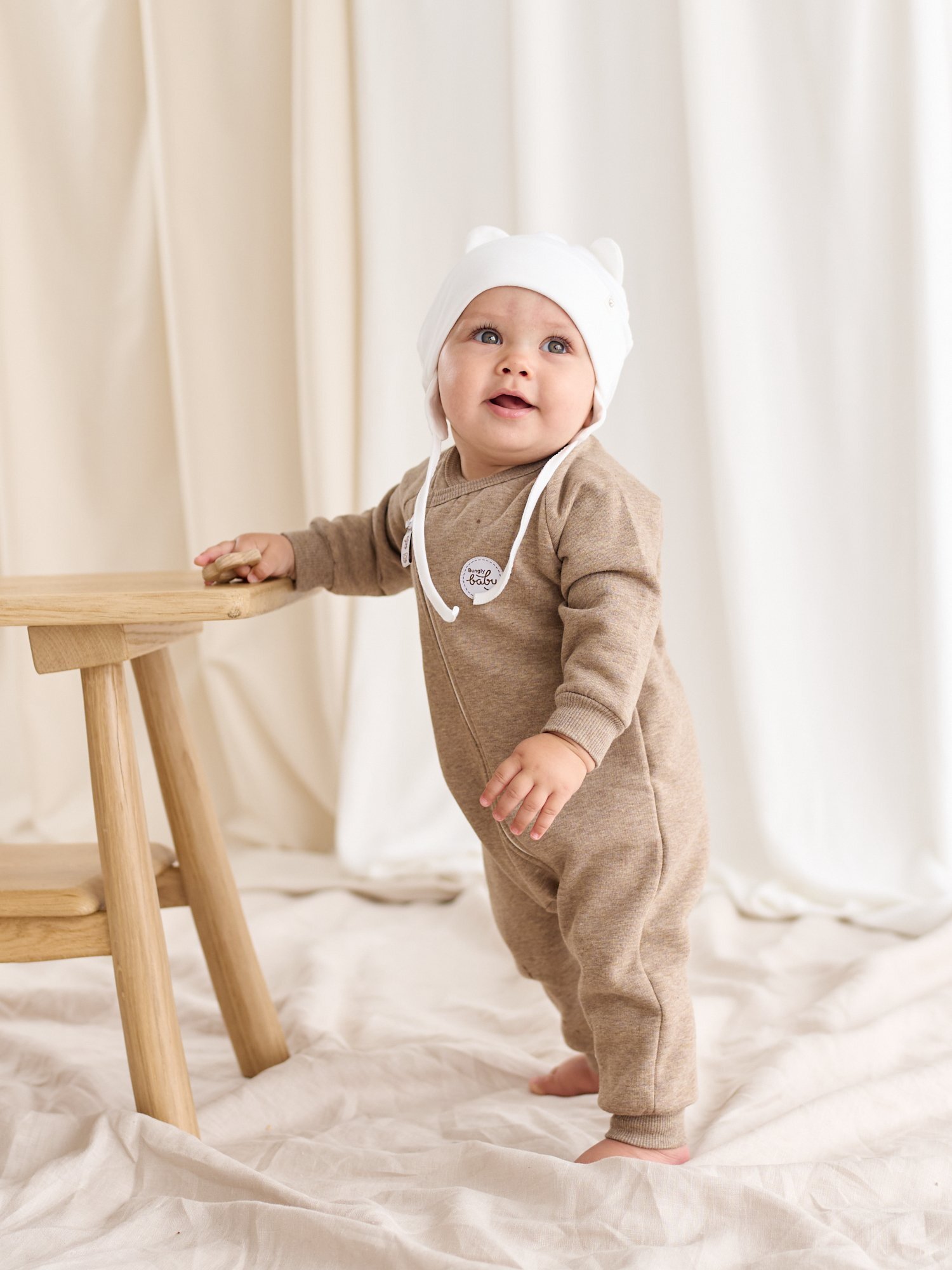 Благодаря продуманному крою комбинезон не сковывает движения малыша.