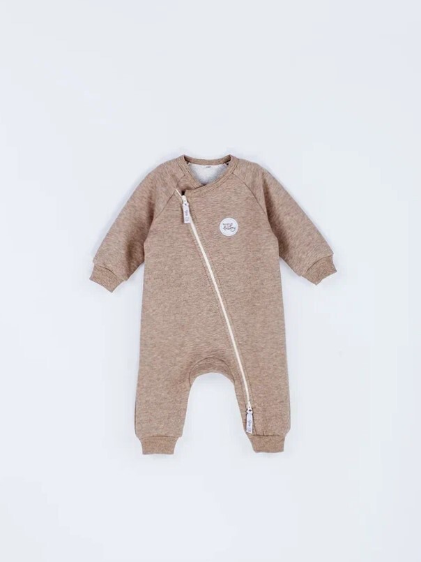 Асимметричная молния и двойной бегунок облегчают процесс переодевания ребенка и смену подгузника.