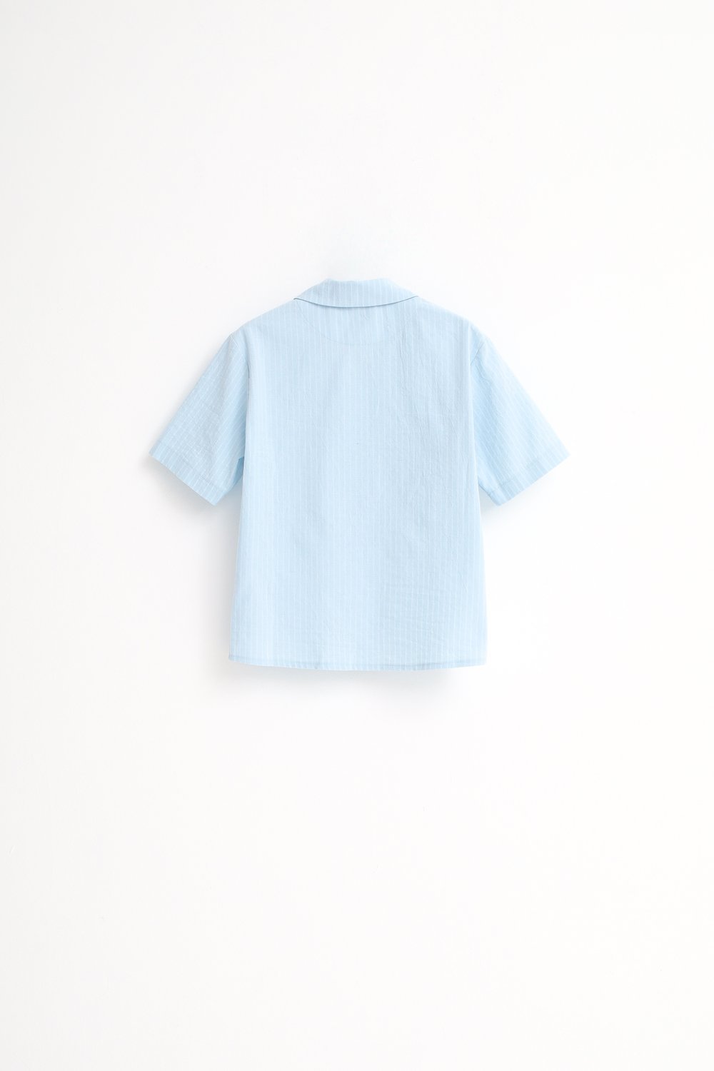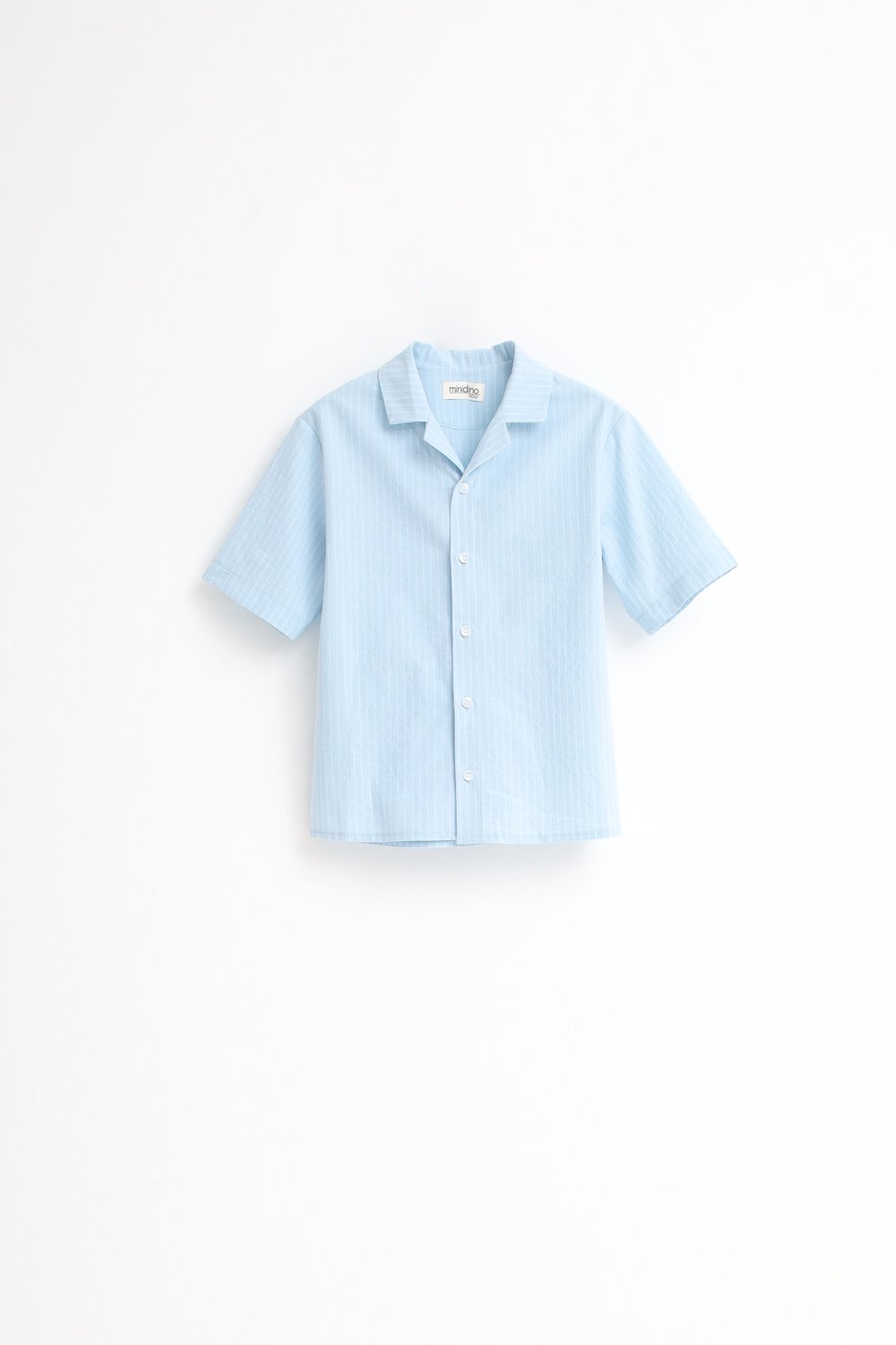 Рубашка свободного кроя, с отложным воротником, с центральной бортовой застежкой на пуговицы. Шорты свободного кроя, с поясом на резинке и карманами с косым входом.