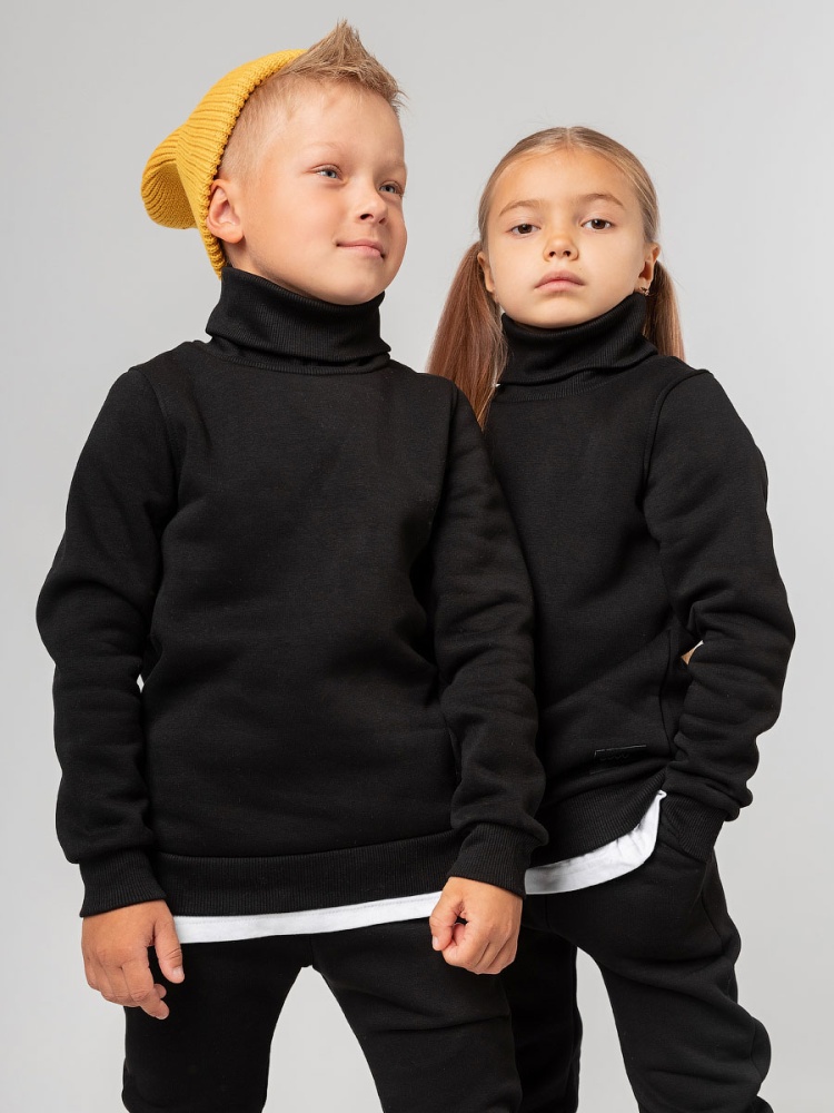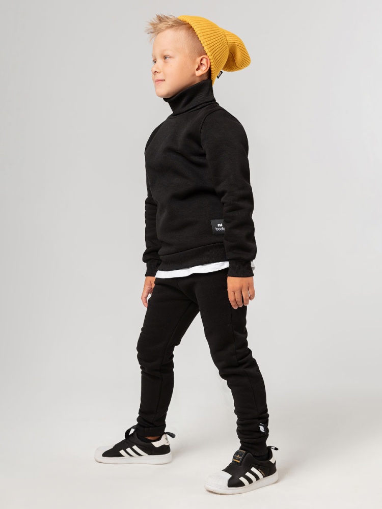 Материал футер трехнитка с начесом Состав 80% хлопок 20% полиэстер Детский костюм. Толстовка с воротником-стойка, рукава на манжетах, полуприлегающий покрой. Брюки- джоггеры, детали: пояс - эластичная резинка, низ изделия- манжеты. Состав: футер трехнитка с начесом 80% хлопок 20% полиэстер