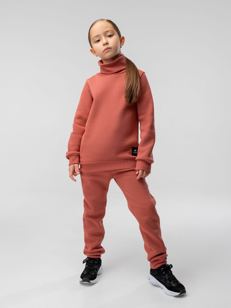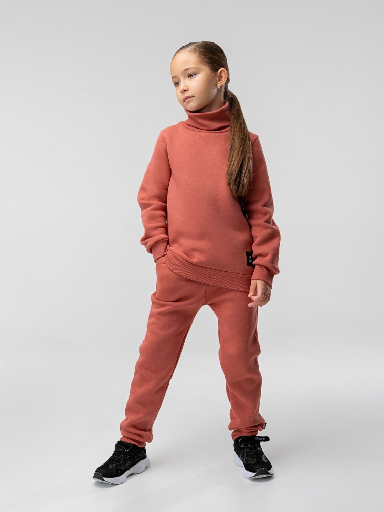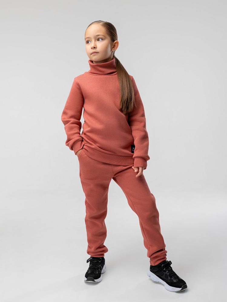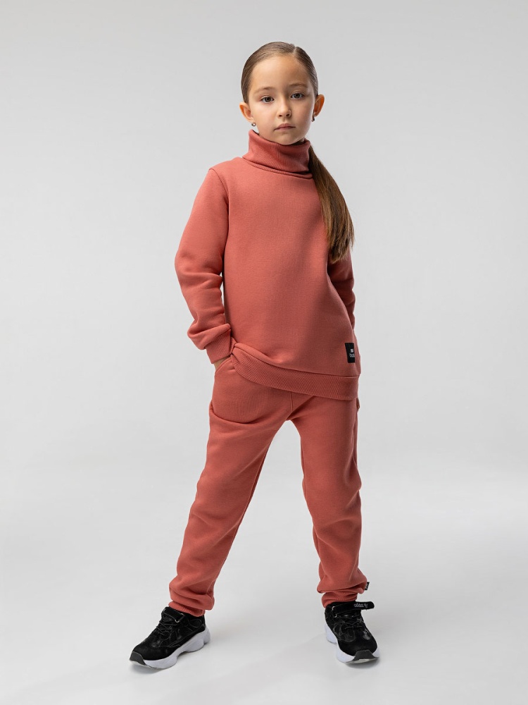 Материал футер трехнитка с начесом Состав 80% хлопок 20% полиэстер Детский костюм. Толстовка с воротником-стойка, рукава на манжетах, полуприлегающий покрой. Брюки- джоггеры, детали: пояс - эластичная резинка, низ изделия- манжеты. Состав: футер трехнитка с начесом 80% хлопок 20% полиэстер