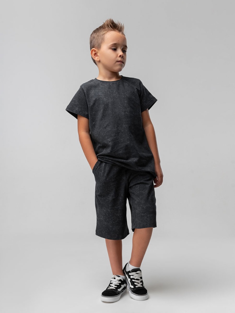Материал кулирная гладь Состав 92% хлопок 8% лайкра Футболка для детей дошкольного возраста. Футболка свободного силуэта с втачным коротким рукавом. Горловина футболки округлой формы. Низ изделия прямой.Шорты для детей дошкольного возраста. Шорты свободные на притачном поясе с внутренней резинкой. Шорты с боковыми карманами и одним накладным карманом на правой задней половинке шорт.
