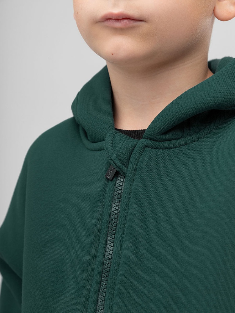 Материал футер трехнитка с начесом Состав 80% хлопок 20% полиэстер Костюм детский. Толстовка: свободный покрой, застежка - молния, рукава на манжетах, защитная планка на молнии, несъемный капюшон, прорезные карманы. Брюки- джоггеры, детали: пояс - эластичная резинка, низ изделия - манжеты, карманы с отрезным бочком. Состав: футер трехнитка с начесом 80% хлопок 20% полиэстер