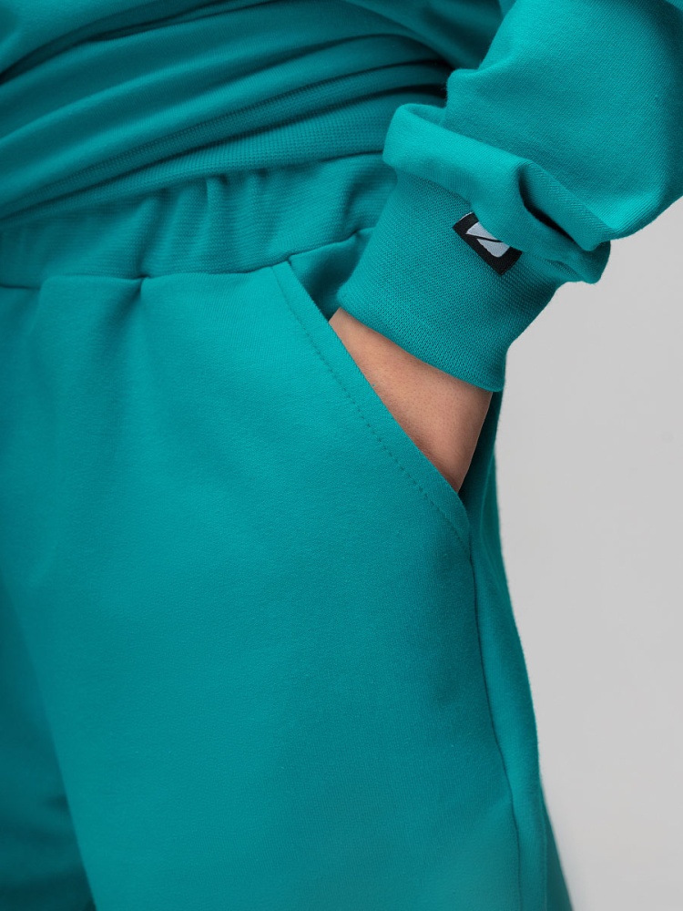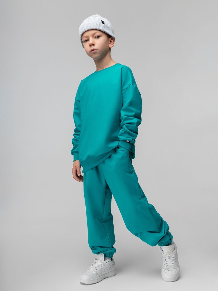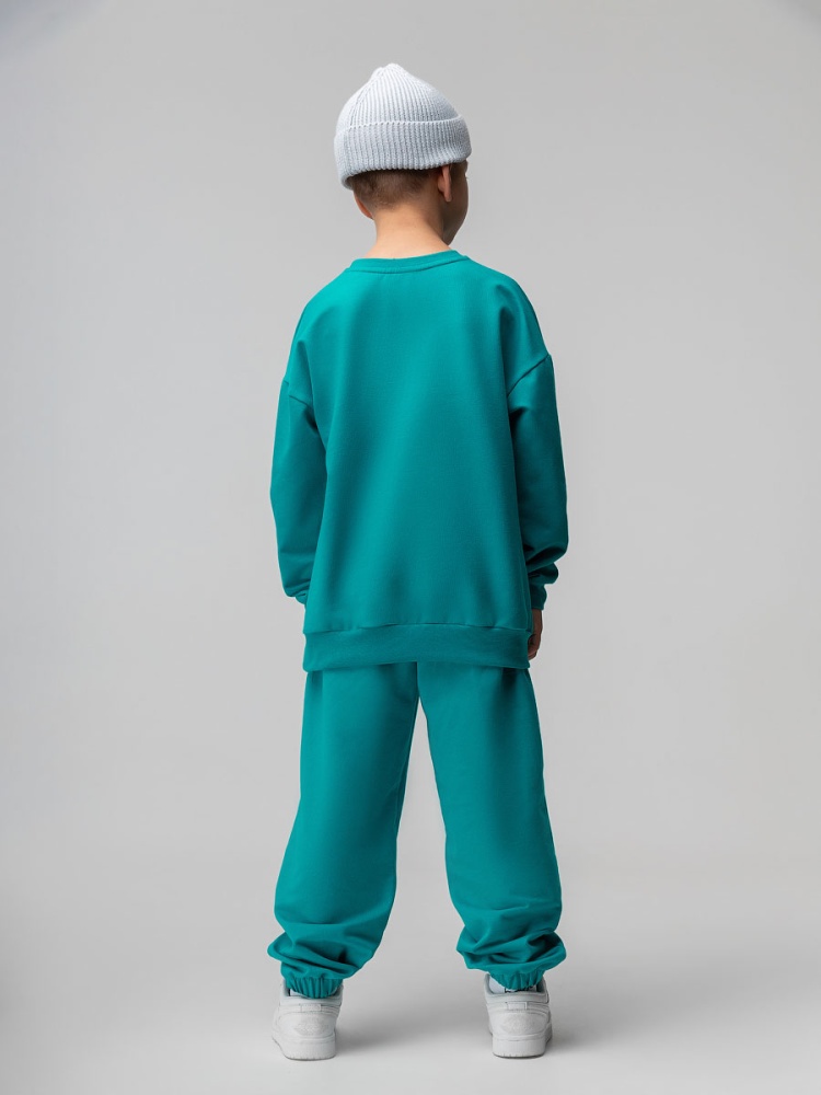 Материал футер двухнитка Состав 92% хлопок 8% лайкра Костюм для детей дошкольного возраста. Толстовка без подкладки, прямого силуэта, на притачном поясе по низу изделия, со спущенным плечом и втачными рукавами с притачной манжетой. Брюки спортивные для детей дошкольного возраста. Брюки прямые свободные на притачном поясе с внутренней резинкой, на притачной манжете по низу изделия с внутренней резинкой. Брюки с боковыми карманами.