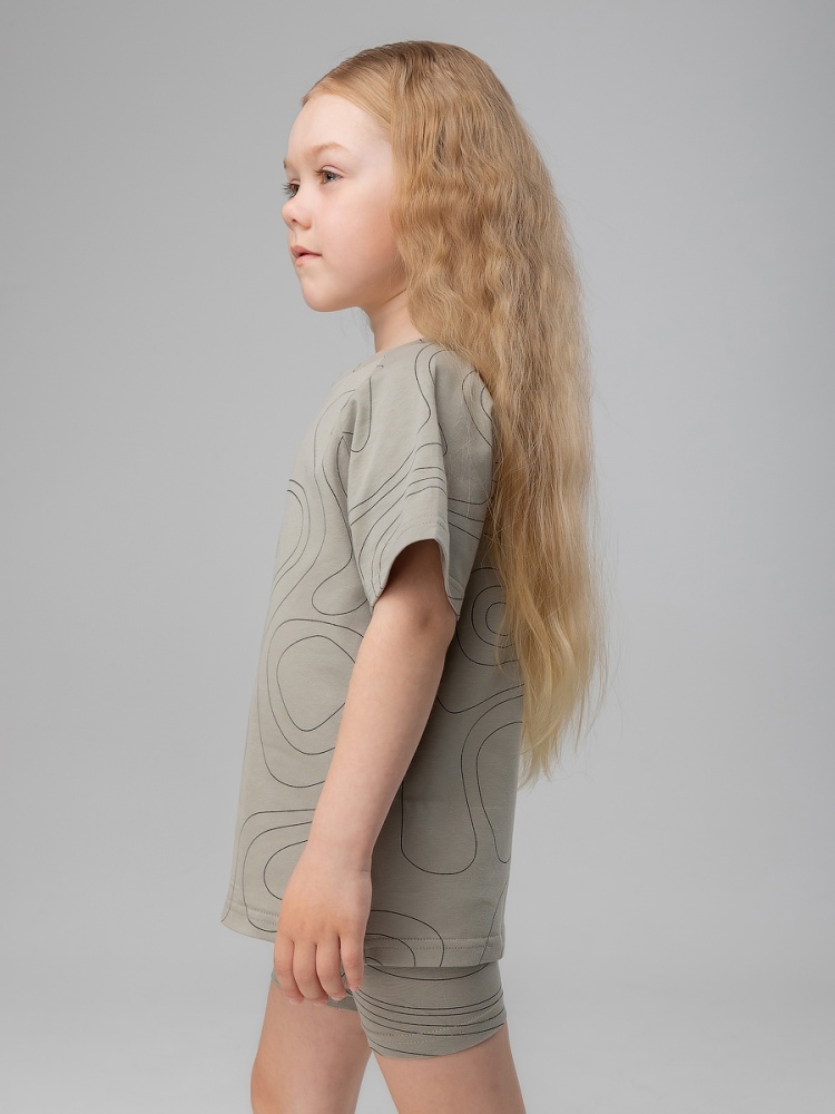 Материал кулирная гладь Состав 92% хлопок 8% лайкра Футболка для детей дошкольного возраста.Футболка свободного силуэта с коротким рукавом реглан. Горловина футболки округлой формы. Леггинсы спортивные для детей дошкольного возраста. Леггинсы прямые короткие с цельнокроеным поясом со внутренней резинкой. Низ ровный. Состав: кулирная гладь 92% хлопок 8% лайкра
