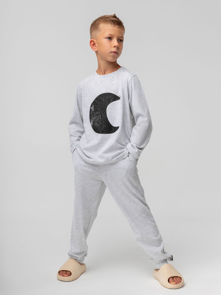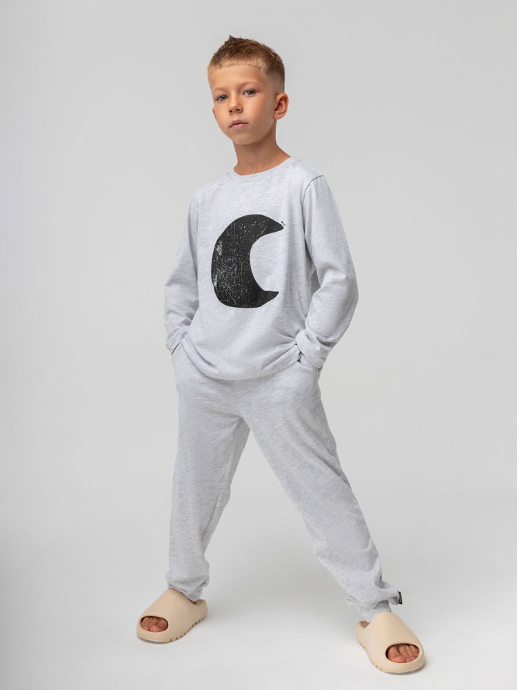 Материал кулирная гладь Состав 92% хлопок 8% лайкра Костюм для детей дошкольного возраста. Лонгслив свободного силуэта с втачным длинным рукавом. Горловина логслива округлой формы. Низ изделия прямой. Брюки прямые свободные на притачном поясе с внутренней резинкой, на притачной манжете по низу изделия. Брюки с боковыми карманами.