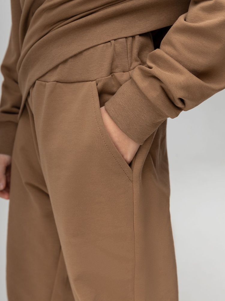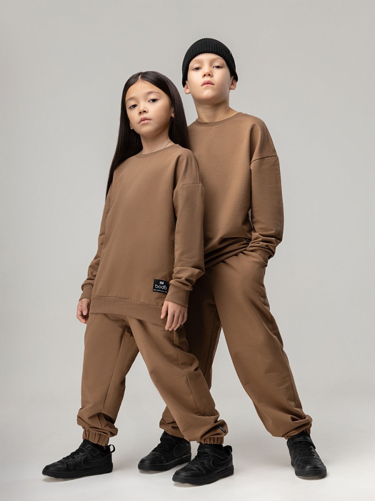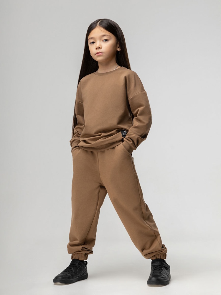 Материал футер двухнитка Состав 92% хлопок 8% лайкра Костюм для детей дошкольного возраста. Толстовка без подкладки, прямого силуэта, с центральной бортовой застёжкой на кнопках, со спущенным плечом и втачными рукавами с притачной манжетой, по низу притачной пояс. Брюки прямые свободные на притачном поясе с внутренней резинкой. Низ брюк с цельнокроеной манжетой на резинке. Брюки с боковыми карманами.
