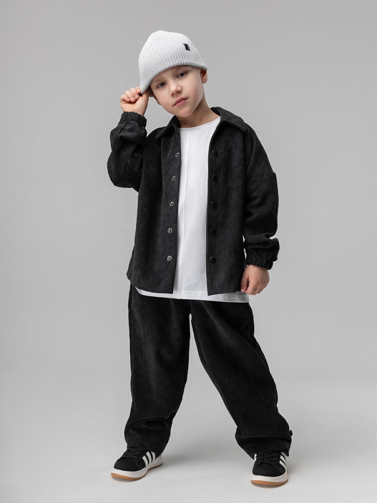 Материал вельвет Состав 100% полиэстер Костюм для детей дошкольного возраста. Рубашка без подкладки, прямого силуэта, с центральной бортовой застёжкой на кнопки, с отложным воротником, с втачными рукавами на резинке. Низ изделия ровный. Брюки свободного силуэта, расширенные в бёдрах и заужены к низу, на притачном поясе с внутренней резинкой, брюки с боковыми карманами. Низ изделия прямой.