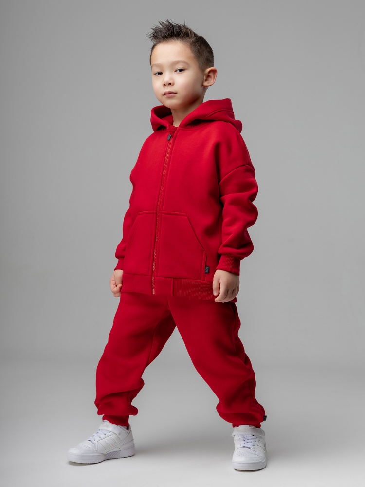 Материал футер трехнитка с начесом Состав 80% хлопок 20% полиэстер Костюм для детей дошкольного возраста. Толстовка прямого силуэта, с центральной бортовой застёжкой на тесьму молния, на притачном поясе по низу изделия, со спущенным плечом, с втачными рукавами с притачной манжетой, с втачным капюшоном. На полочке располагается карман «кенгуру».Брюки прямые свободные на притачном поясе с внутренней резинкой, на притачной манжете. Брюки с боковыми карманами. Без накладного кармана.