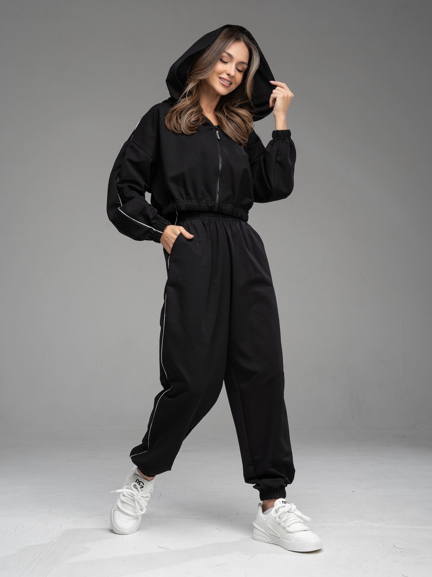 Толстовка укороченная на молнии не только добавит стиля образу, но и обеспечит дополнительный комфорт и удобство. А объемные рукава придадут костюму модный и современный вид.