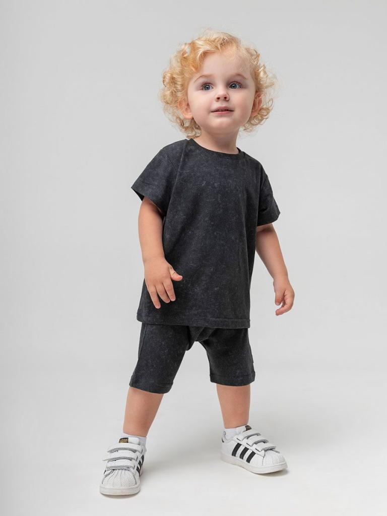 Артикул 21-103МU Материал кулирная гладь Состав 92% хлопок 8% лайкра Костюм для детей ясельного возраста. Футболка прямого силуэта, с втачными коротким рукавами. Горловина округлой формы. Шорты спортивные для детей ясельного возраста. Шорты прямые на притачном поясе с внутренней резинкой. Шорты без среднего шва. Низ ровный. Состав: кулирная гладь 92% хлопок 8% лайкра