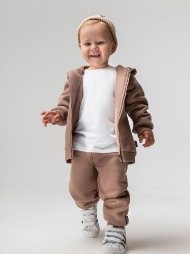 Артикул 21-23MU Материал футер трехнитка с начесом Состав 80% хлопок 20% полиэстер Костюм детский в начесом: толстовка и брюки. Толстовка с несъемный капюшоном на молнии, рукава на манжетах. Брюки- джоггеры, детали: пояс - эластичная резинка, низ изделия- манжеты.