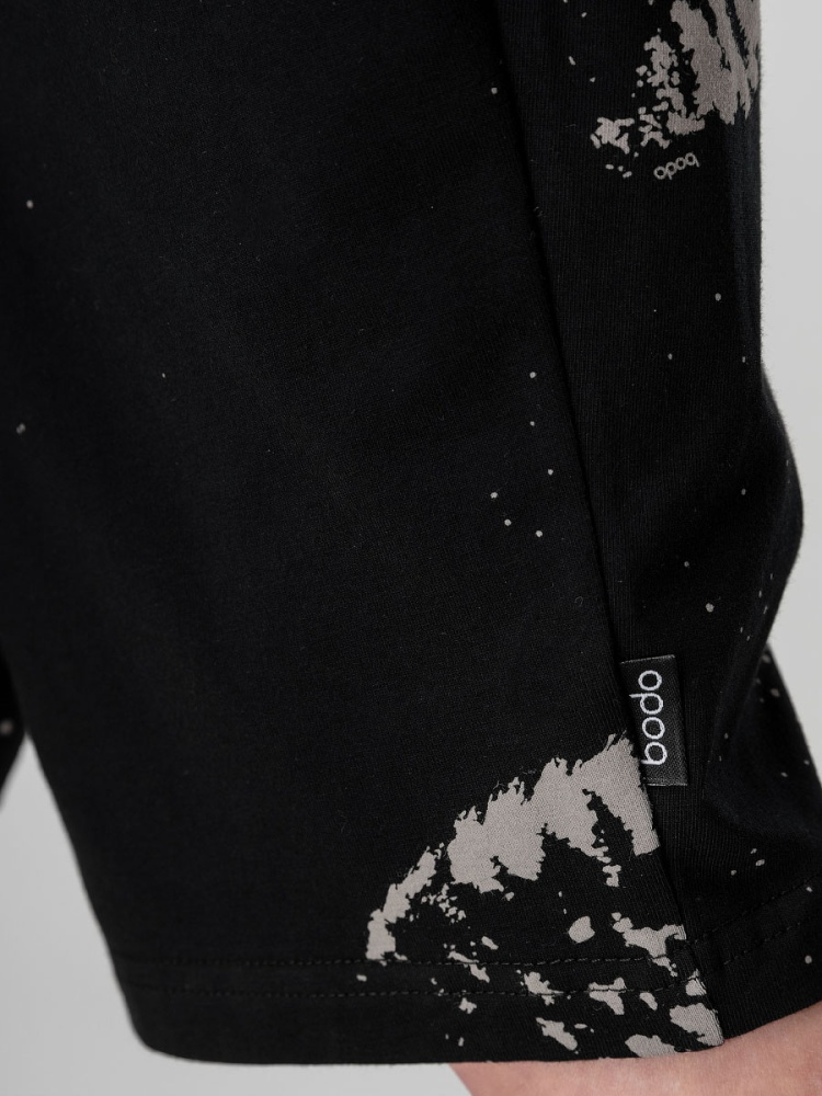 Материал кулирная гладь Состав 92% хлопок 8% лайкра Футболка для детей школьного возраста. Футболка свободного силуэта с втачным коротким рукавом. Горловина футболки округлой формы. Низ изделия прямой.Шорты прямые свободные на притачном поясе с внутренней резинкой. Шорты с боковыми карманами.