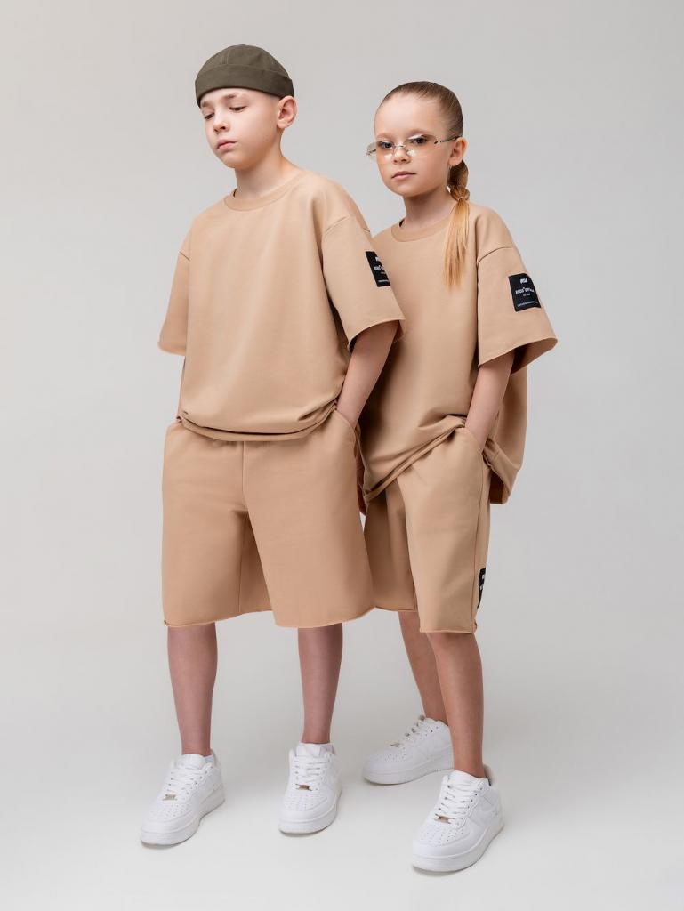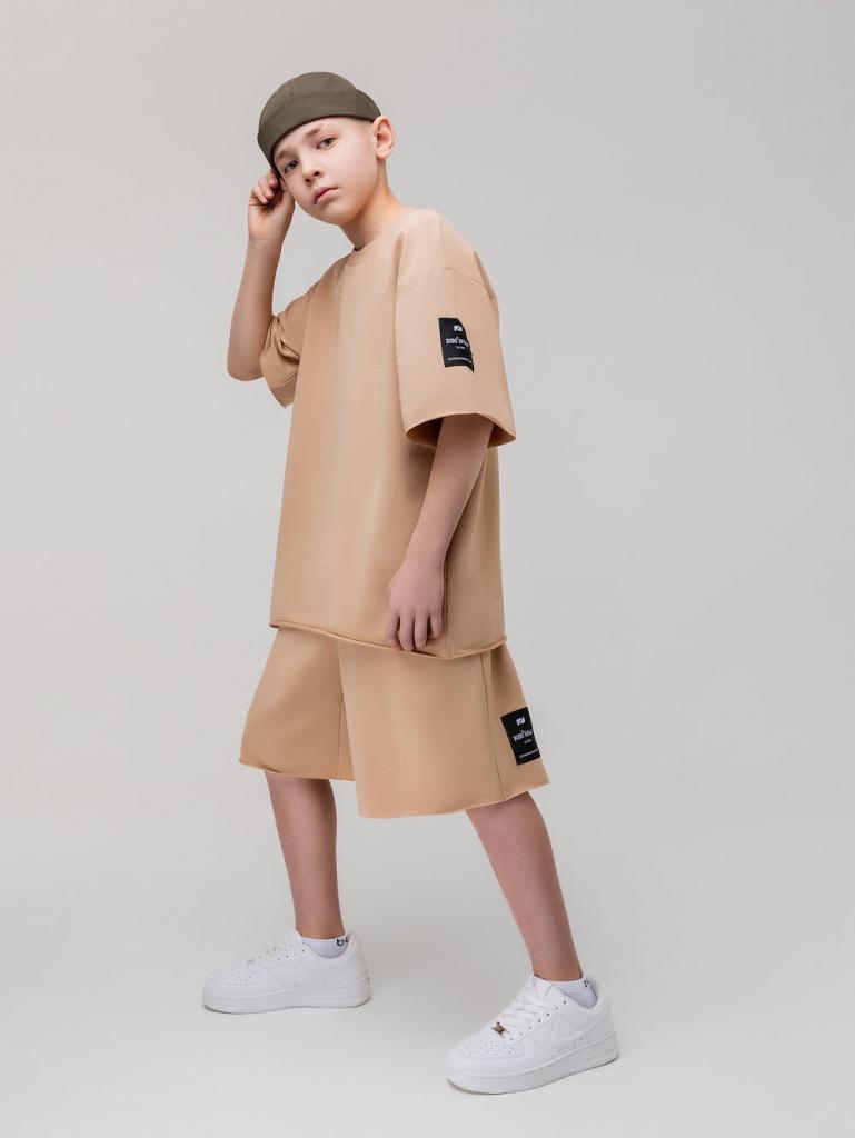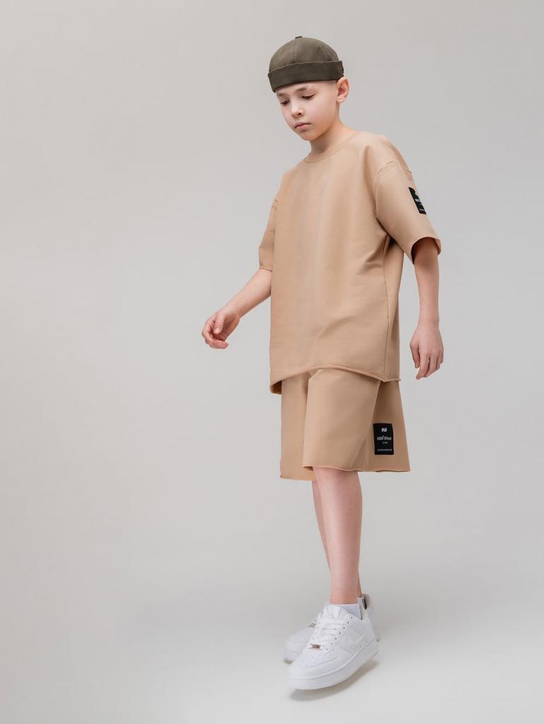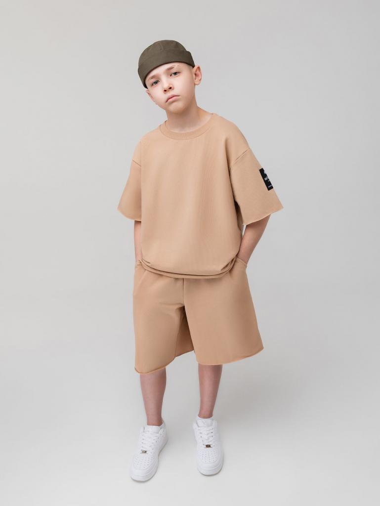 Артикул 46-34МU Состав 92% хлопок 8% лайкра Материал футер двухнитка Костюм оверсайз: футболка и шорты. Свободная футболка с коротким рукавом, округлый вырез горловины, низ изделия и низ рукава не обработан. Свободные шорты на поясе - эластичная резинка, карманы с отрезным бочком, низ ровный не обработан.