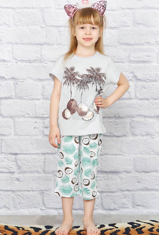 Удобный вариант на лето - это хлопковый костюм. Удлинённые бриджи прямого кроя и футболка с печатным принтом на полочке. Такой комплект подойдёт и для игр, и для сна.