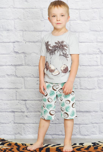 Классный хлопковый костюм для мальчиков. Майка с вышивкой "бананчик" и удлинённые шортики.