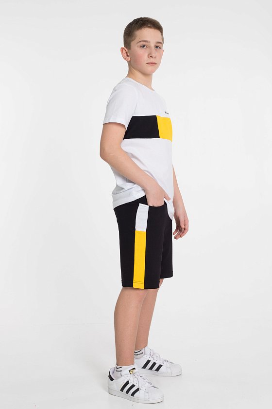 Шорты с боковыми карманами и отделочной боковой полосой 2-х цветов.