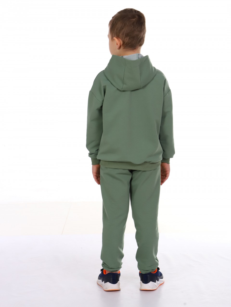 Толстовка свободная с капюшоном и карманом "кенгуру". Брюки прямого кроя снизу на резинке. Удобную посадку брюк обеспечивает поясная резинка. Такой костюм прекрасно подойдёт как для спорта, так и для отдыха.