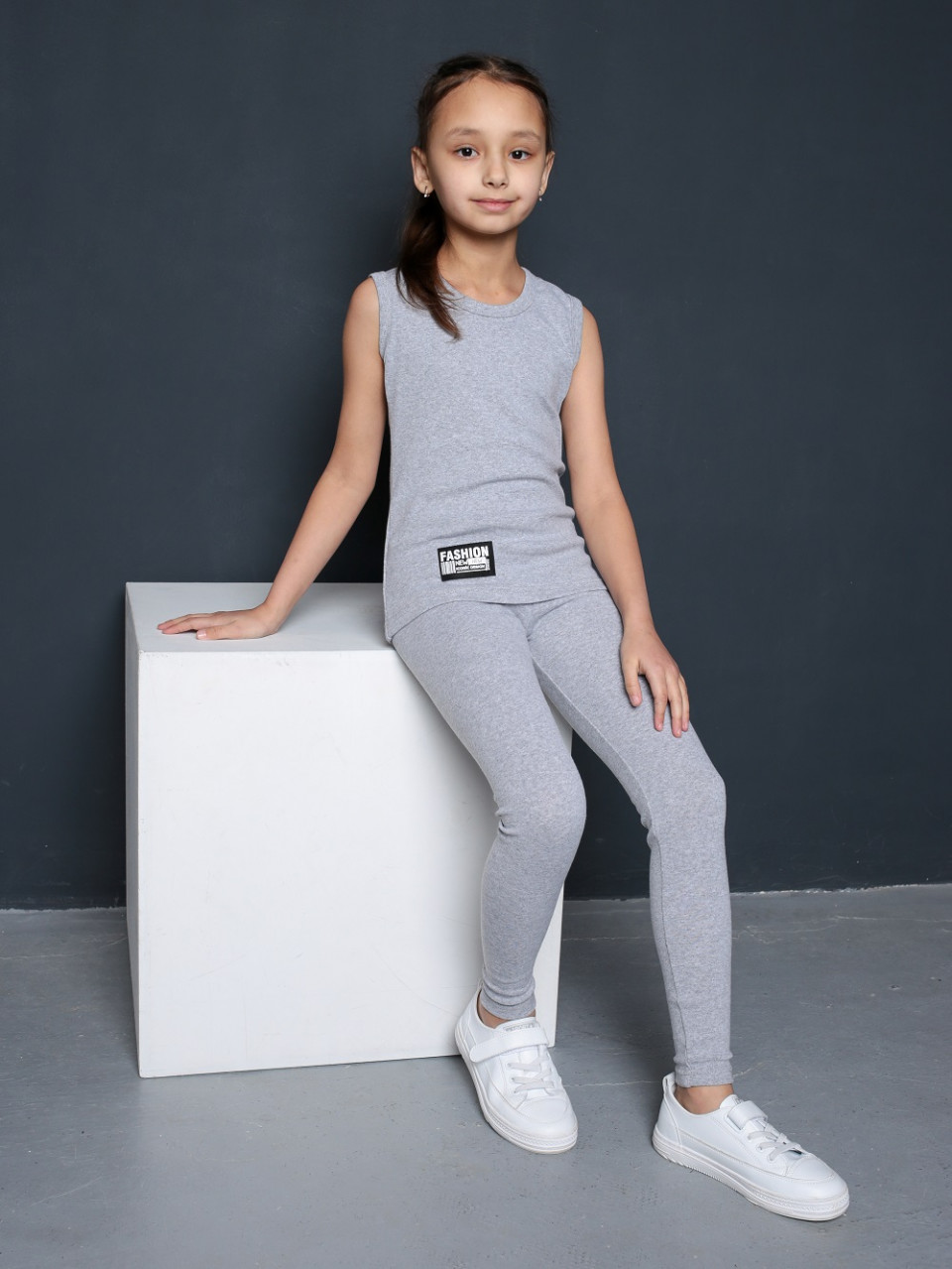 Летний спортивный костюм для девочки. Майка приталенного силуэта без рукавов, брючки обтягивающие. Детский комплект отлично подойдет для отдыха, дома, прогулок.