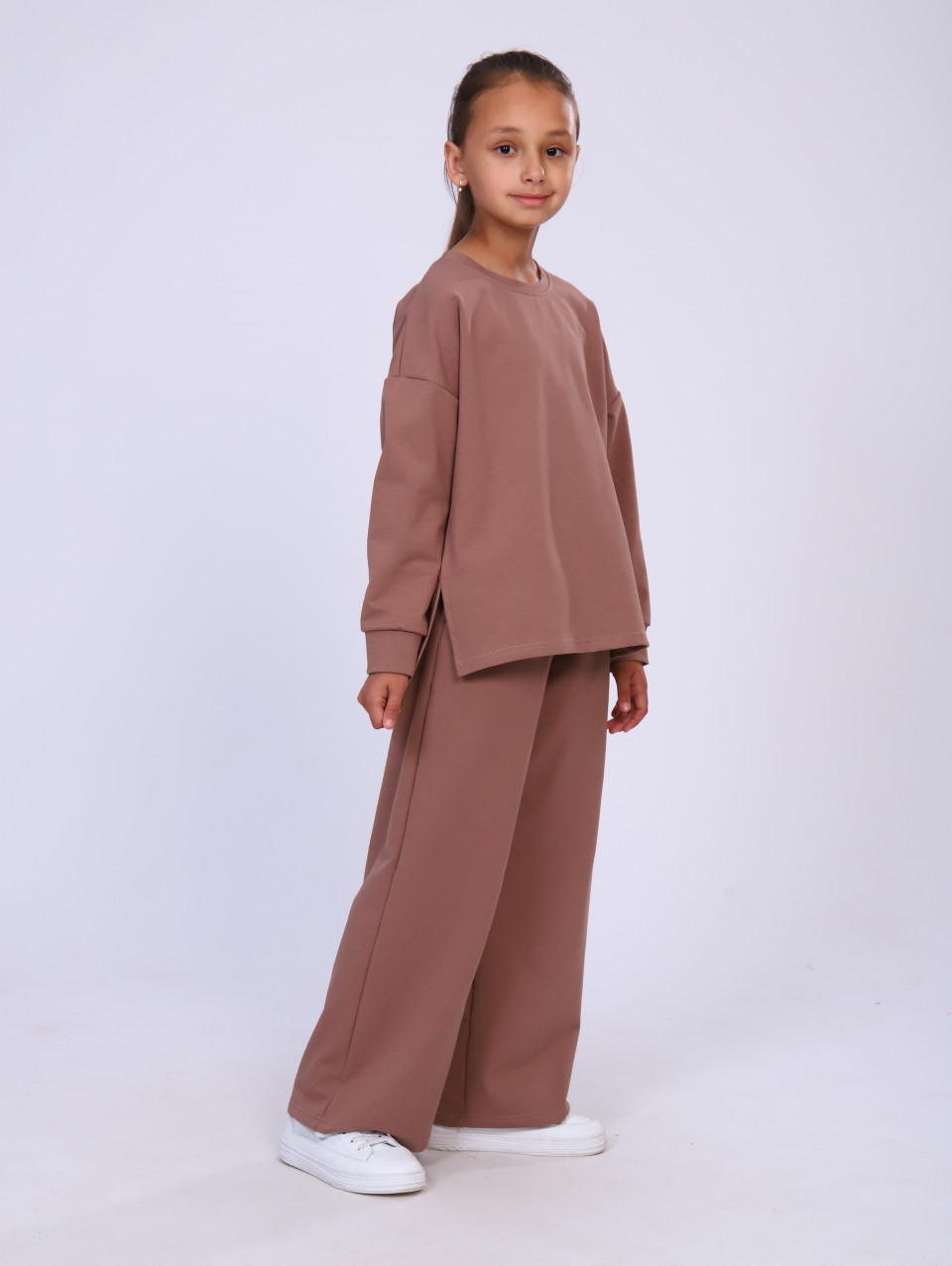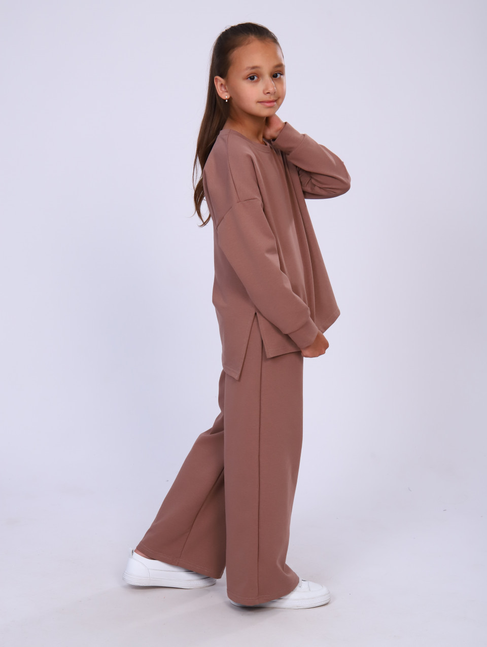 Детский спортивный костюм для девочки подростка которая стремиться быть модной и стильной, выполнен из натурального трикотажа премиум качества футер пенье. Размерный ряд широкий от 128 до 164 размера. Модные и актуальные в этом сезоне расклешенные брюки паллацо или брюки кюлоты обязательно дополнят образ модной девочки. Костюм из футер для девочки . Летний костюм. Костюм на теплую осень для фотосессии. Школьный костюм подростковый. Большое однотонное худи и широкие штаны. Комплект двойка состоит из лонгслива оверсайз со спущенным плечом и широкими брюками. Легкий летний костюм для девочки с брюками палаццо выполнен из турецкого трикотажа. Легкий и плотный костюм не покрывается катышками, имеет базовую свободную кофту худи с длинным спущенным рукавом, капюшон свободного кроя, завязки на кофте и брюки палаццо свободного кроя клеш от бедра подойдут в школу и на прогулку, а также как повседневная одежда, для спортивных танцев, на физкультуру в школу, для поездок. Резинка в штанах не перекручивается. Хлопковый качественный костюм для девушки тинейджера сохраняет первоначальный вид даже после многочисленных стирок, он детский школьный стиляга карго. Летний и весенний вариант костюм для девочки представлен в разной цветовой гамме. Костюм для девочки подростка и футболкой оверсайз - тренд 2023 года. Неотъемлемая вещь в гардеробе каждой модницы, прекрасный подарок на день рождения, именины, новый год. Подарок от бабушки,подарок от дедушки, подарок для крестницы, подарок для дочки. Для максимального комфорта вашего ребенка брюки клеш снабжены глубокими карманами. Комплект можно носить как самостоятельно, так и комбинировать с другими базовыми вещами. Трикотажный комплект подойдет для девочек всех возрастов и размеров, обеспечивая удобство для малыша и нарядный вид для ребенка подростка.