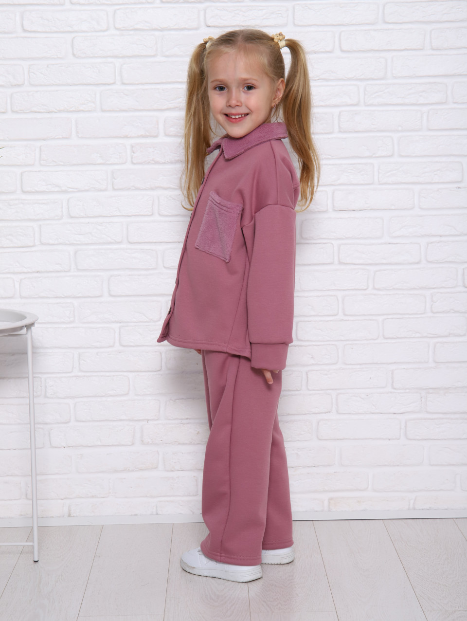 Для маленьких модниц у нас есть прекрасное предложение - теплый и нарядный детский костюм. Он состоит из однотонных брюк с удобными карманами и рубашки на пуговицах. Брючки на мягкой широкой эластичной резинке, которая не передавливает кожу, подстраивается положение тела ребенка и его движения, обеспечивает комфорт на целый день. Рубашка на пуговицах с длинными рукавами на манжетах. Костюм можно использовать как одежду для дома, как домашний костюм, повседневный костюм - одежда для улицы на каждый день, костюм на дачу, как сменную одежду в детский садик. Базовая детская вещь незаменимая для детского гардероба. Ткань, из которой он сделан, - интерсофт 3-х нитка, что обеспечивает комфорт и приятное ощущение на коже. Состав ткани - 60% полиэстер и 40% хлопок.