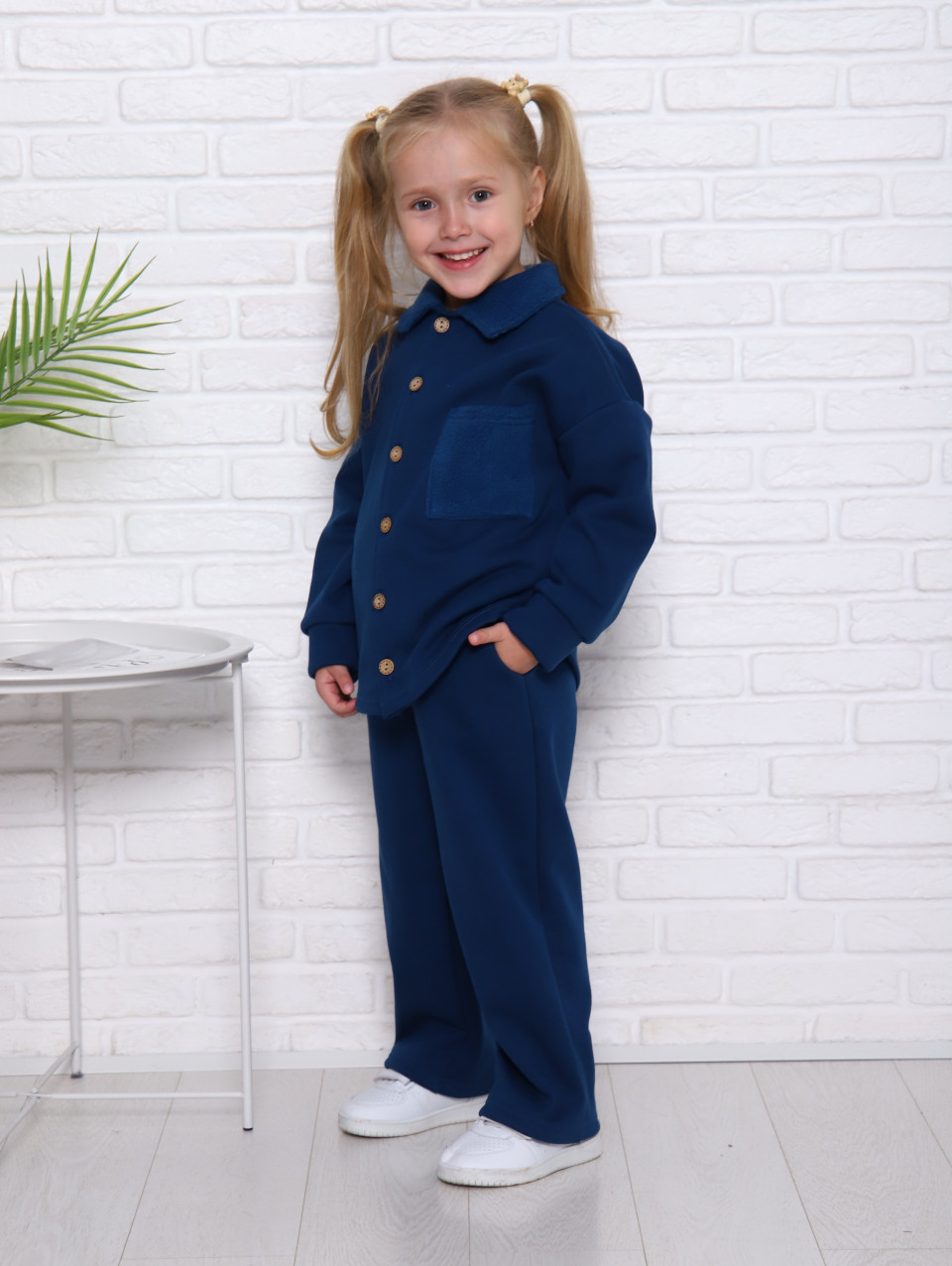 Для маленьких модниц у нас есть прекрасное предложение - теплый и нарядный детский костюм. Он состоит из однотонных брюк с удобными карманами и рубашки на пуговицах. Брючки на мягкой широкой эластичной резинке, которая не передавливает кожу, подстраивается положение тела ребенка и его движения, обеспечивает комфорт на целый день. Рубашка на пуговицах с длинными рукавами на манжетах. Костюм можно использовать как одежду для дома, как домашний костюм, повседневный костюм - одежда для улицы на каждый день, костюм на дачу, как сменную одежду в детский садик. Базовая детская вещь незаменимая для детского гардероба. Ткань, из которой он сделан, - интерсофт 3-х нитка, что обеспечивает комфорт и приятное ощущение на коже. Состав ткани - 60% полиэстер и 40% хлопок.