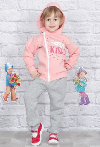 Тёплый уютный костюм для девочек. Толстовка прямого кроя, на полочке печатный принт. Брючки прямые, пояс на резинке.